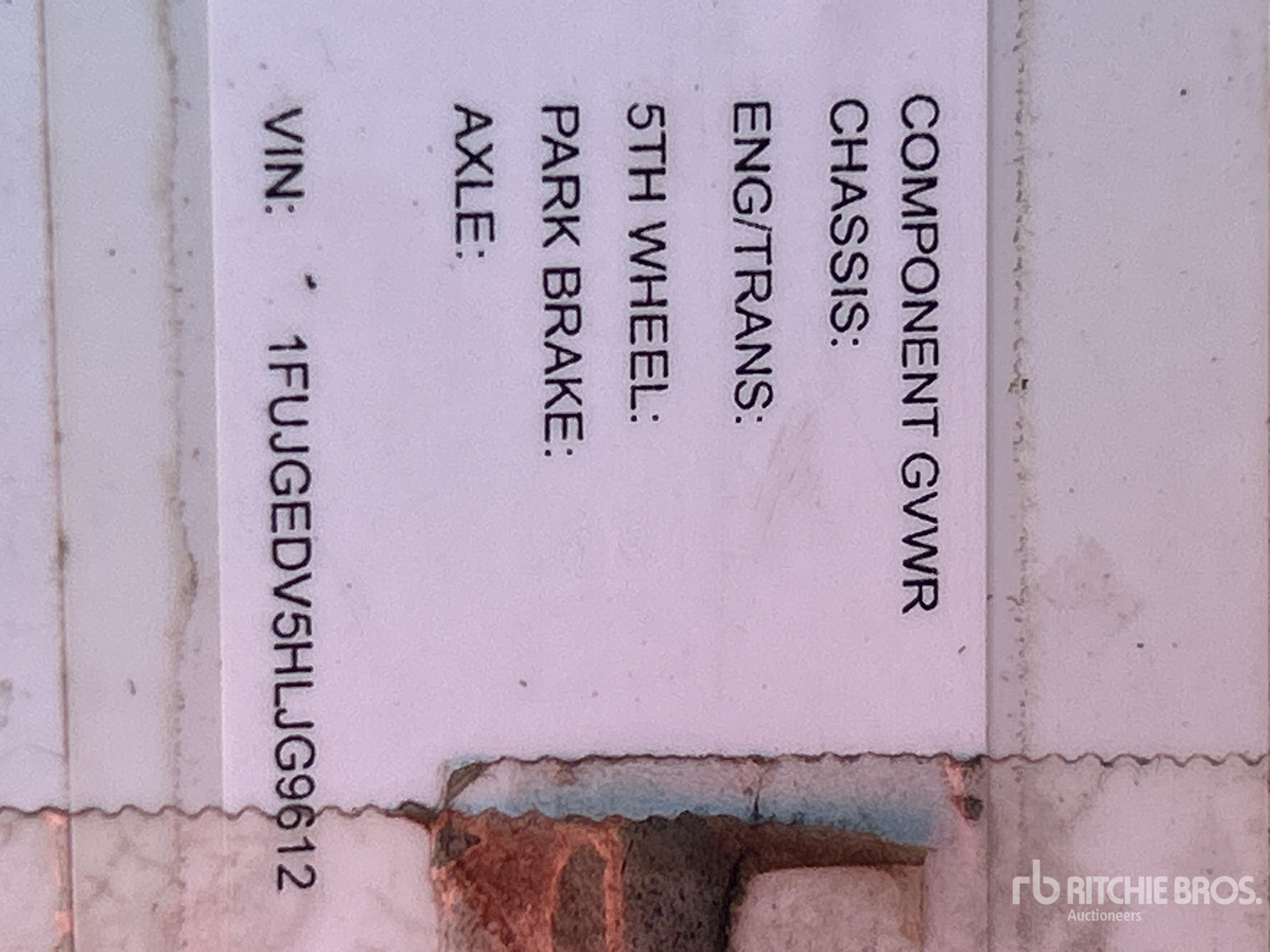 The detailed equipment information is limited in scope, and Ritchie Bros. Auctioneers has not inspected any aspects or components of the equipment other than those expressly set forth herein. Unless expressly stated, we make no representations or warranties, express or implied, concerning the equipment or its components, including without limitation any representations or warranties concerning functionality, conformity or compliance with any safety standard or requirement of any applicable authority or regulatory body, fitness for any particular purpose, or merchantability. You are strongly advised to perform your own detailed inspection of the equipment prior to bidding.
