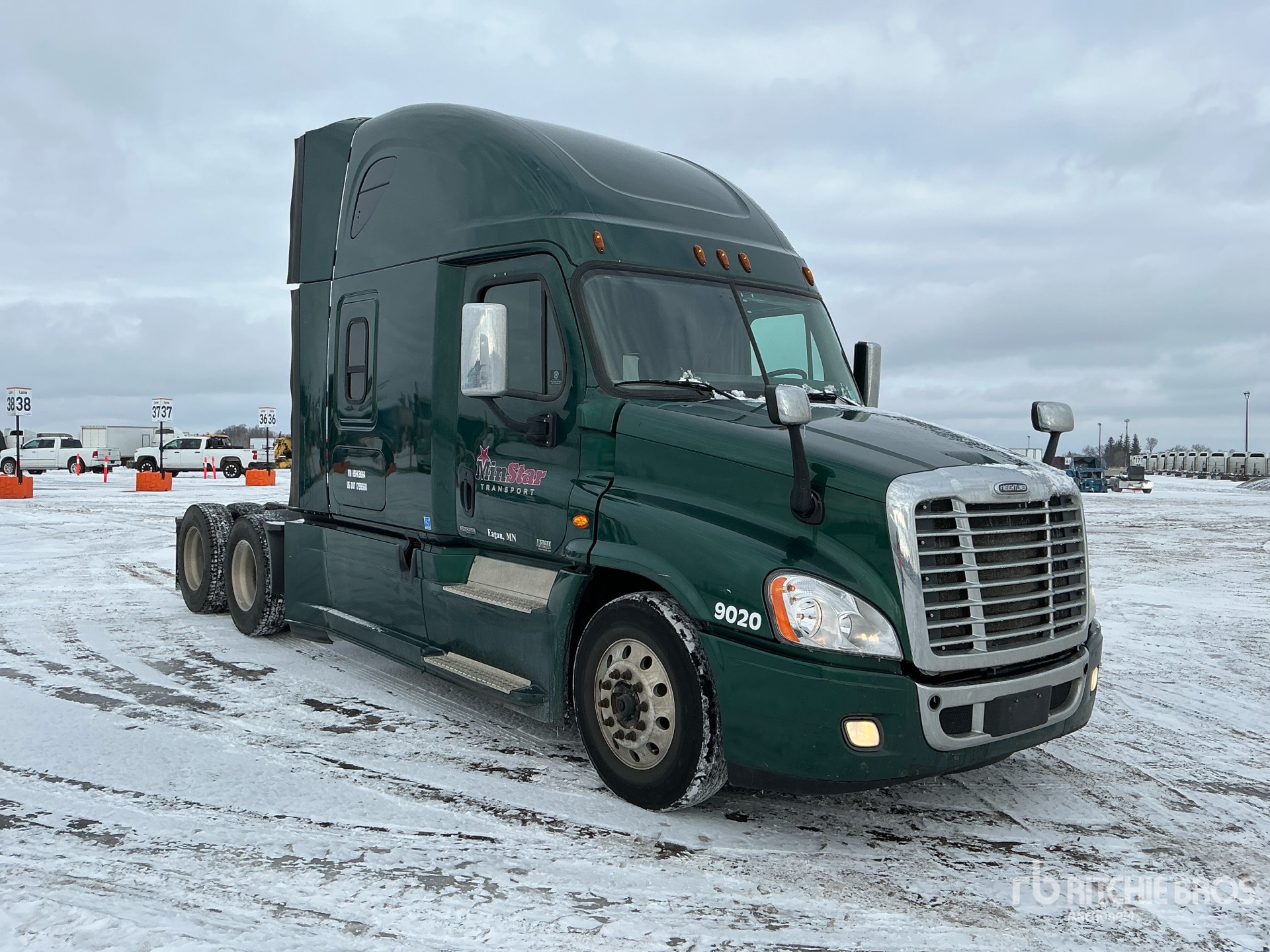 Located in Lane 26 Spot 155, Detroit DD15 Engine, 2016 US EPA Label, 25222 Engine hrs, Eaton Fuller 10-Speed Manual Transmission, 12500 lb Front Axle, 40000 lb Rears, 52500 lb GVWR, Engine Brake, 70 in High Rise Sleeper Cab, Bunk Beds, Bunk Heater, 233 in Wheelbase, Air Suspension, Aluminum Outer Wheels, 275/80R22.5, Air Sliding 5th Wheel, Dual Fuel Tanks