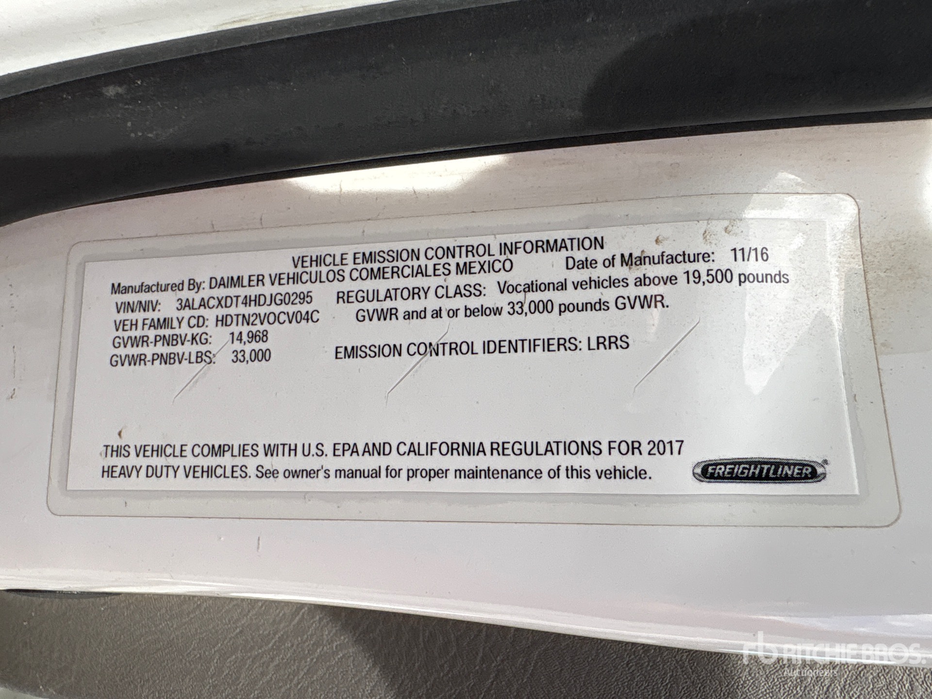 2016 US EPA Label, Requires Diesel Exhaust Fluid