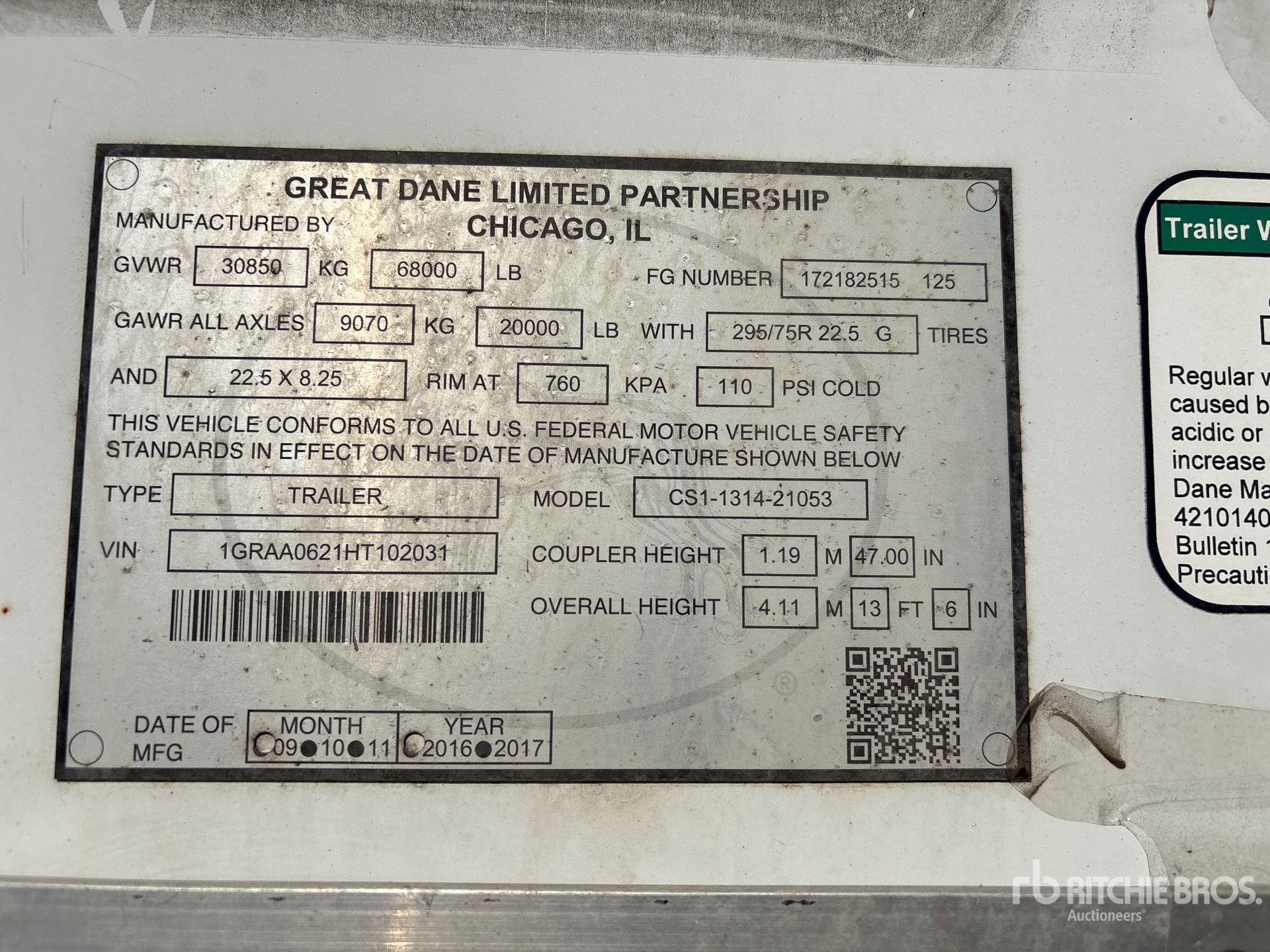 The detailed equipment information is limited in scope, and Ritchie Bros. Auctioneers has not inspected any aspects or components of the equipment other than those expressly set forth herein. Unless expressly stated, we make no representations or warranties, express or implied, concerning the equipment or its components, including without limitation any representations or warranties concerning functionality, conformity or compliance with any safety standard or requirement of any applicable authority or regulatory body, fitness for any particular purpose, or merchantability. You are strongly advised to perform your own detailed inspection of the equipment prior to bidding.
