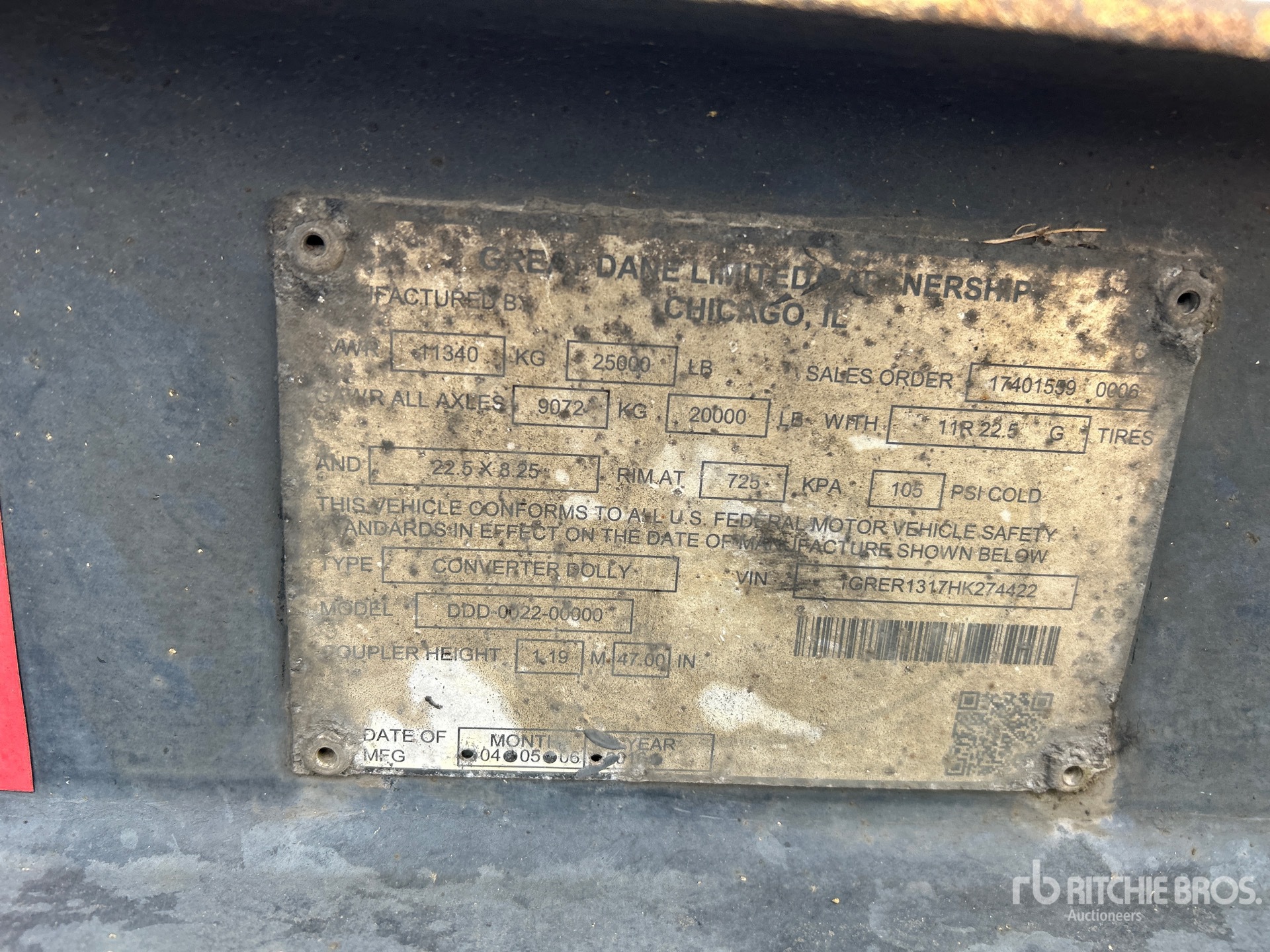 The detailed equipment information is limited in scope, and Ritchie Bros. Auctioneers has not inspected any aspects or components of the equipment other than those expressly set forth herein. Unless expressly stated, we make no representations or warranties, express or implied, concerning the equipment or its components, including without limitation any representations or warranties concerning functionality, conformity or compliance with any safety standard or requirement of any applicable authority or regulatory body, fitness for any particular purpose, or merchantability. You are strongly advised to perform your own detailed inspection of the equipment prior to bidding.