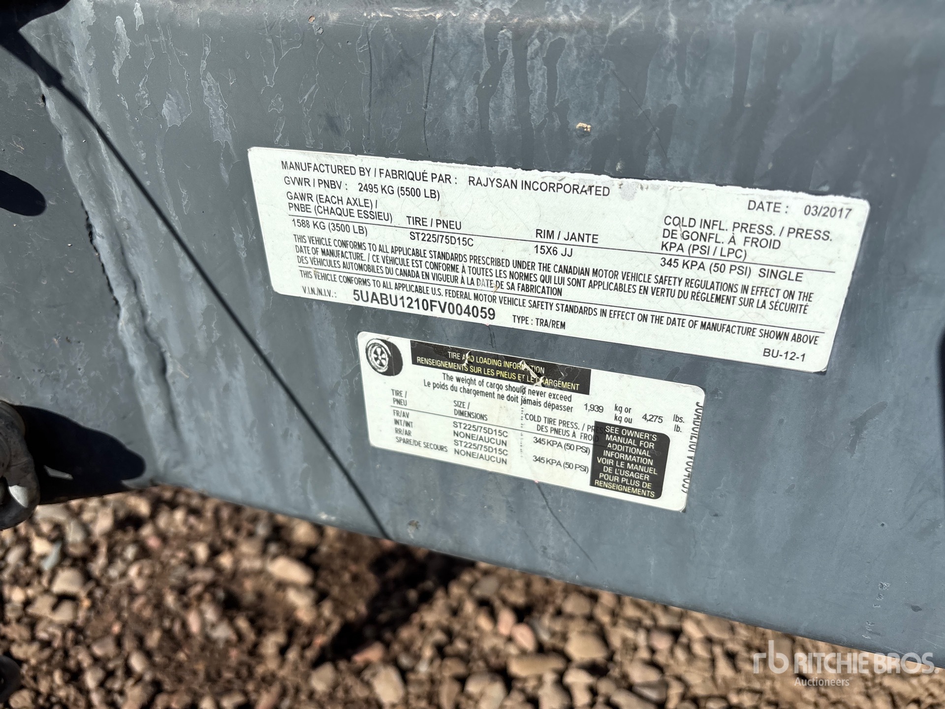 The detailed equipment information is limited in scope, and Ritchie Bros. Auctioneers has not inspected any aspects or components of the equipment other than those expressly set forth herein. Unless expressly stated, we make no representations or warranties, express or implied, concerning the equipment or its components, including without limitation any representations or warranties concerning functionality, conformity or compliance with any safety standard or requirement of any applicable authority or regulatory body, fitness for any particular purpose, or merchantability. You are strongly advised to perform your own detailed inspection of the equipment prior to bidding.