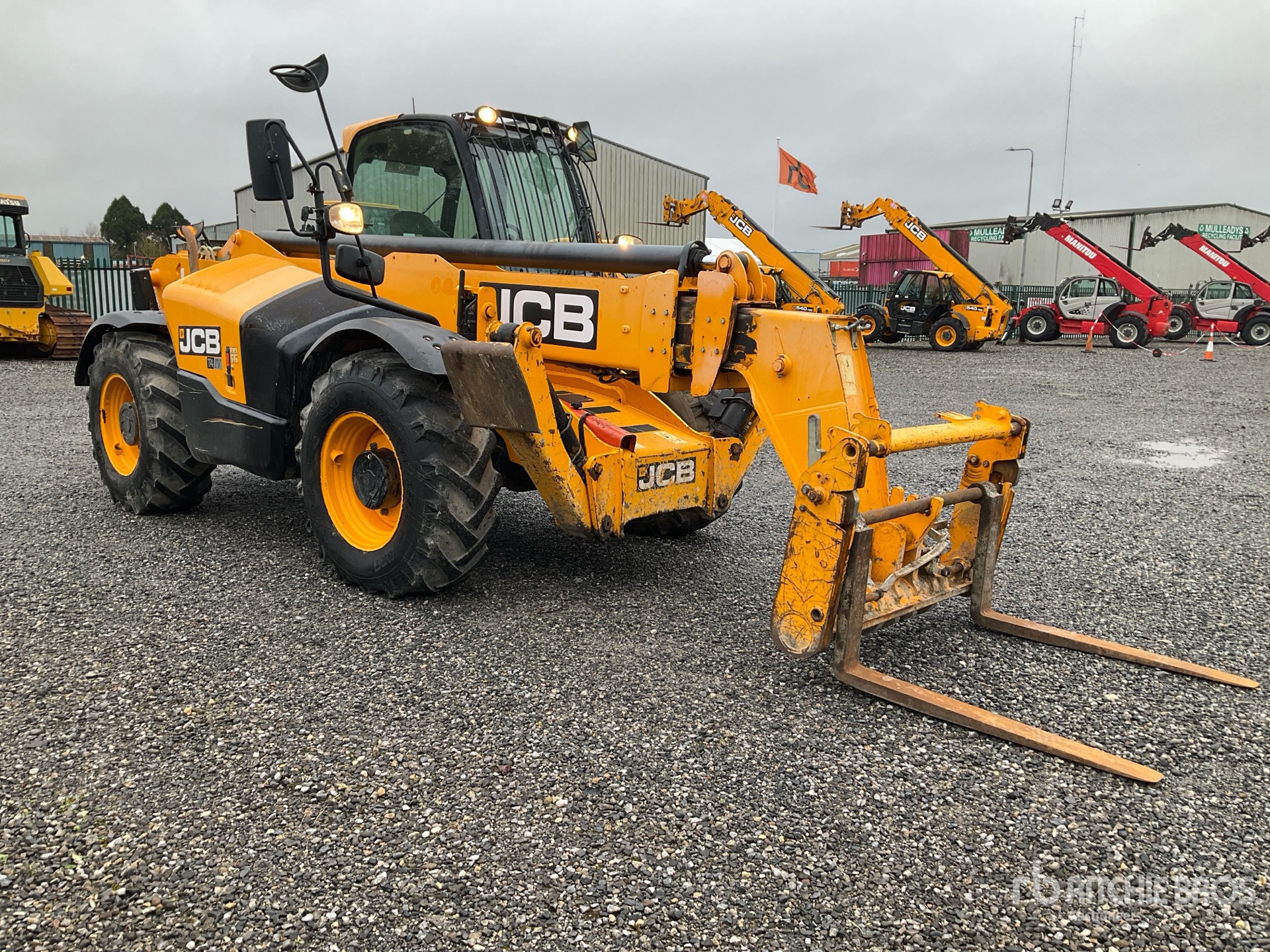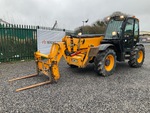 Enclosed Cab, Load Moment Indicator, 13.78 m Max Lift Height, 4000 kg Max Lift Capacity, 1050 mm Forks, Manual Coupler, Outriggers, Frame Leveling, Auxiliary Hydraulic Plumbing, 16.5/85-24 Tires