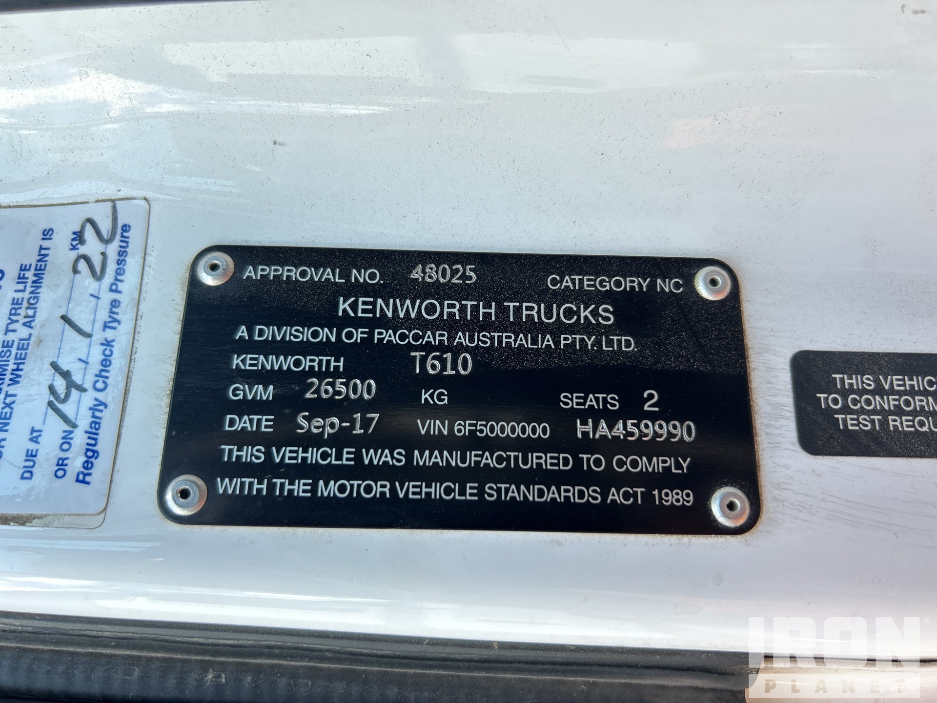 Cummins X15 485 hp Engine, 17811 Engine hrs, Eaton Fuller 18-Speed Manual Transmission, 46000 lb Rears, Engine Brake, Autoclima Sleeper Air Conditioner, 5000 mm Wheelbase, 8-Bag Air Suspension, 295/80R22.5 Front Tires, 11R22.5 Rear Tires, Ballrace 5th Wheel, GVM 26.5 t, GCM 97 t, A267914