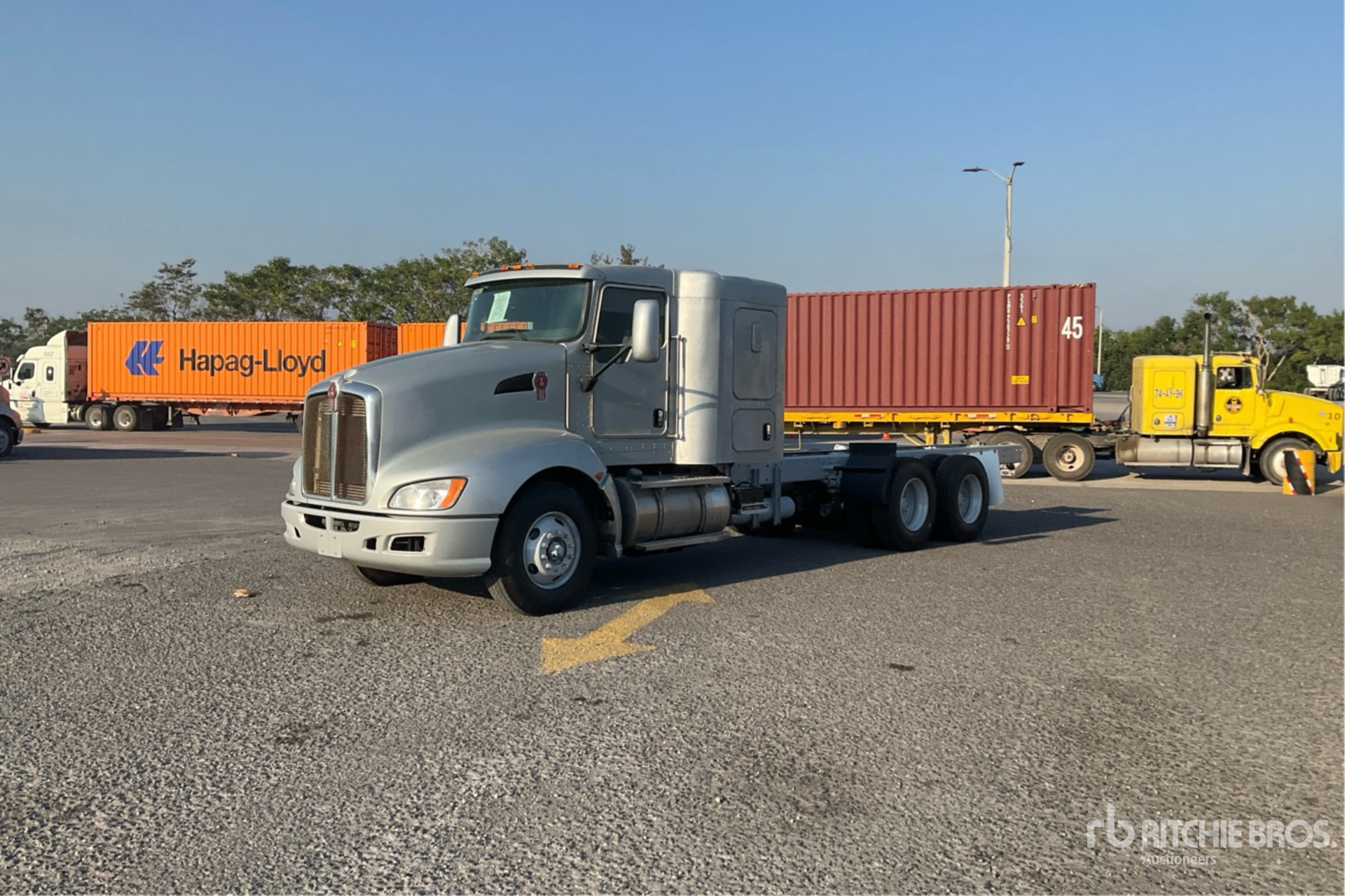 Paccar MX Diesel 455 hp Engine, 2631 Engine hrs, Engine Brake, Eaton Fuller RTLO-16918B 18-Speed Manual Transmission, 14600 lb Front Axle, 40000 lb Rears, 3.55:1 Axle Ratio, 42 in Flat Top Sleeper Cab, 11R22.5 Front Tires, 11R22.5 Rear Tires, Double Frame, Hendrickson Air Ride Suspension, 236 in Wheelbase, 118 in Cab to Axle, 264 in Cab to End of Frame