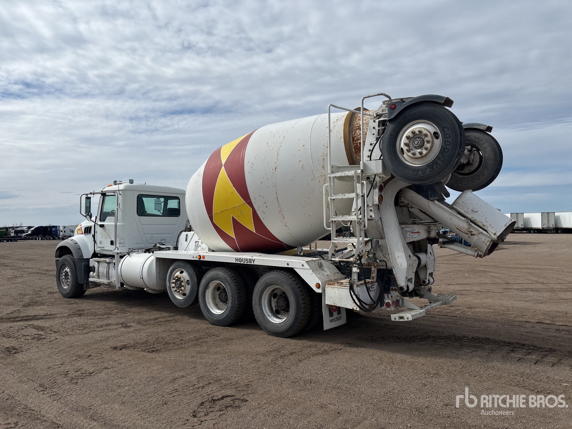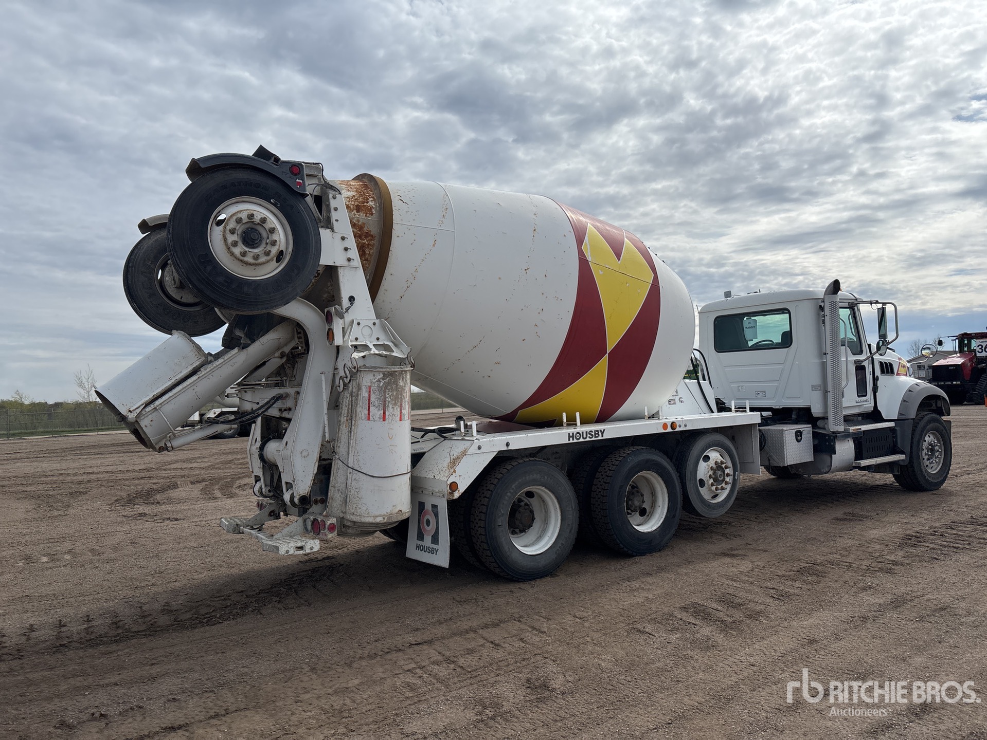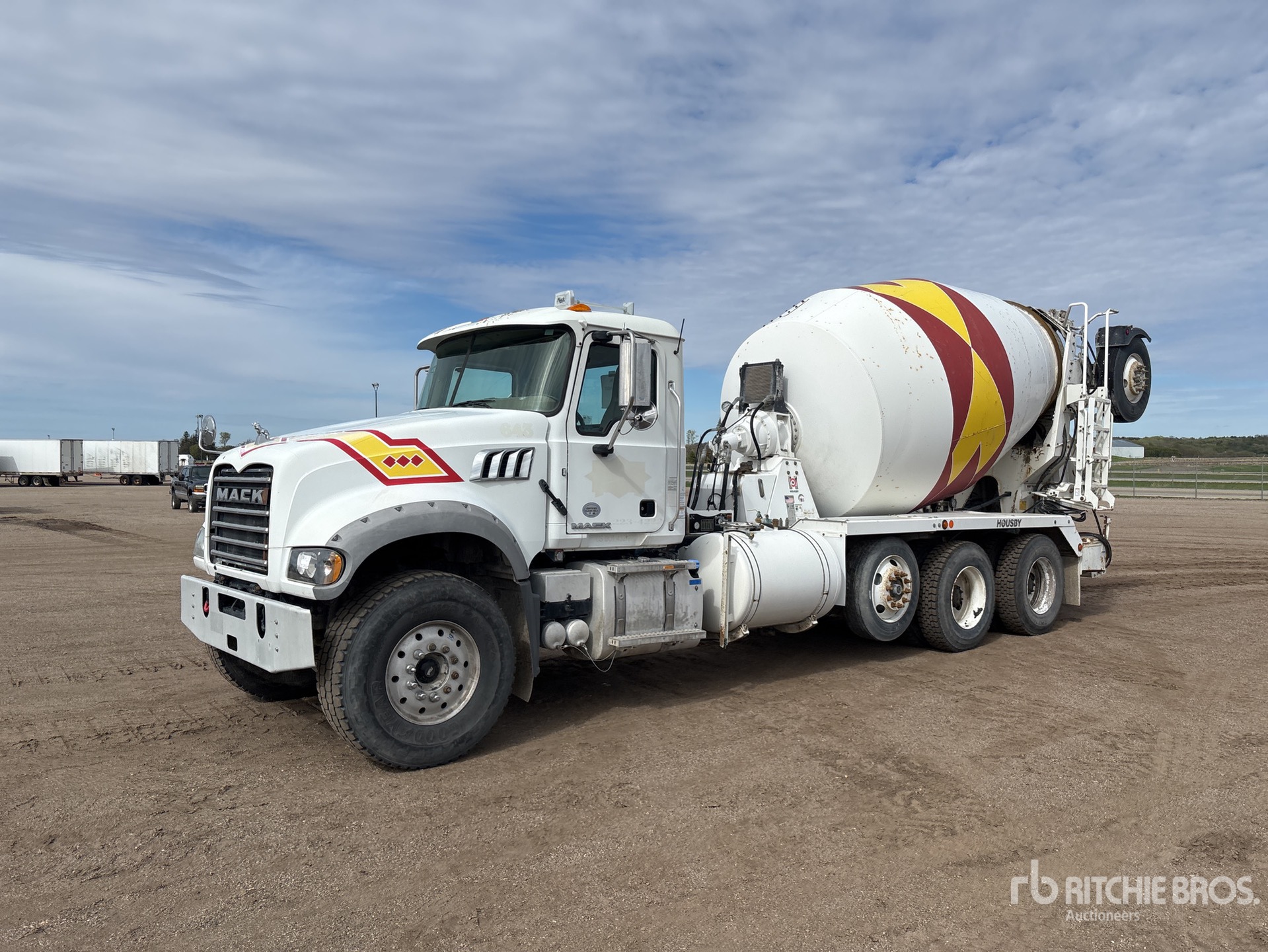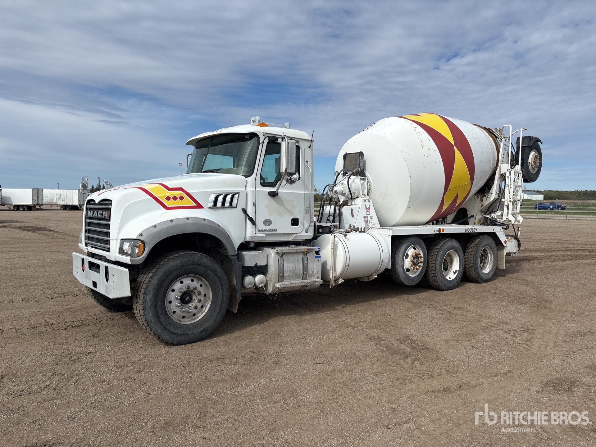Mack MP7 6 Cylinder Diesel 550 hp Engine, 2016 US EPA Label, Requires Diesel Exhaust Fluid, Engine Brake, Allison 4700RDS Automatic Transmission, Differential Lock, 20000 lb Front Axle, 46000 lb Rears, 66000 lb GVWR, Air Ride Cab, Aluminum Front Wheels, 425/65R22.5 Front Tires, 11R22.5 Rear Tires, Steerable Air Lift Pusher Axle, Steerable Air Lift Tag Axle, Hendrickson Haulmaax Rubber over Walking Beam Suspension, 226 in Wheelbase, PTO, housby 11 cyd Mixer Unit, 3 Removable Chutes, Remote Control w/Cord