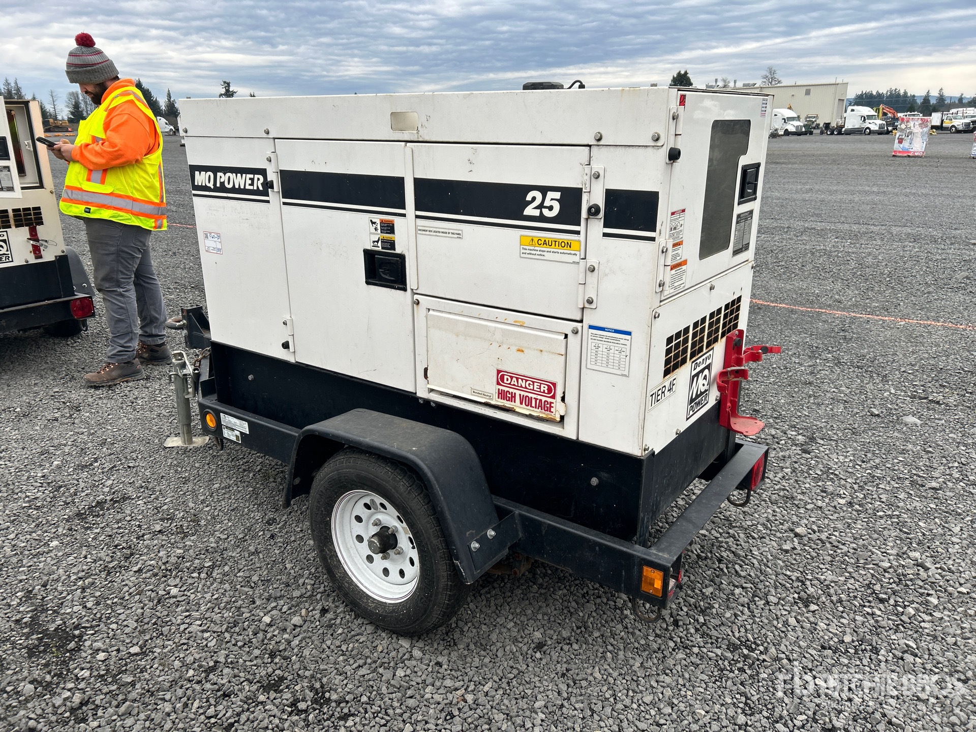 2017 US EPA Label, Isuzu 4LE2T 4 Cylinder 19 kW 2.179 cc Diesel Engine, 25 kVA/20 kW Rated 3 Phase Output, 480 V / 240 V / 120 V Rated Voltage, 14.4 kVA,/14.4 kW, Rated Single Phase Output, 120 V / 240 V Rated Voltage, 240 V & 120 V Receptacles, Sound Attenuated, Bottom Mounted Fuel Tank, Lunette Ring Carrier Trailer