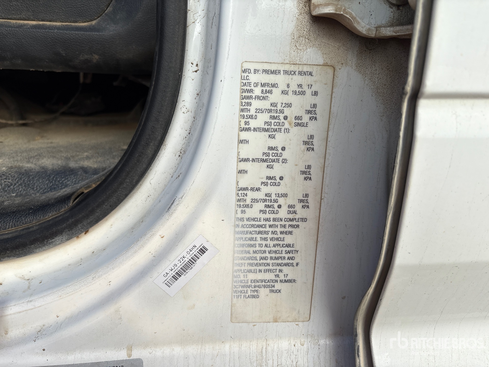 6 Cylinder 5.9 L Diesel Engine, 2015 US EPA Label, Requires Diesel Exhaust Fluid, 5424 Engine hrs, Exhaust Brake, Automatic Transmission, 7250 lb Front Axle, 13500 lb Rears, 19500 lb GVWR, 225/70R19.5, Spring Suspension, 200 in Wheelbase, 11 ft x 91 in Bed