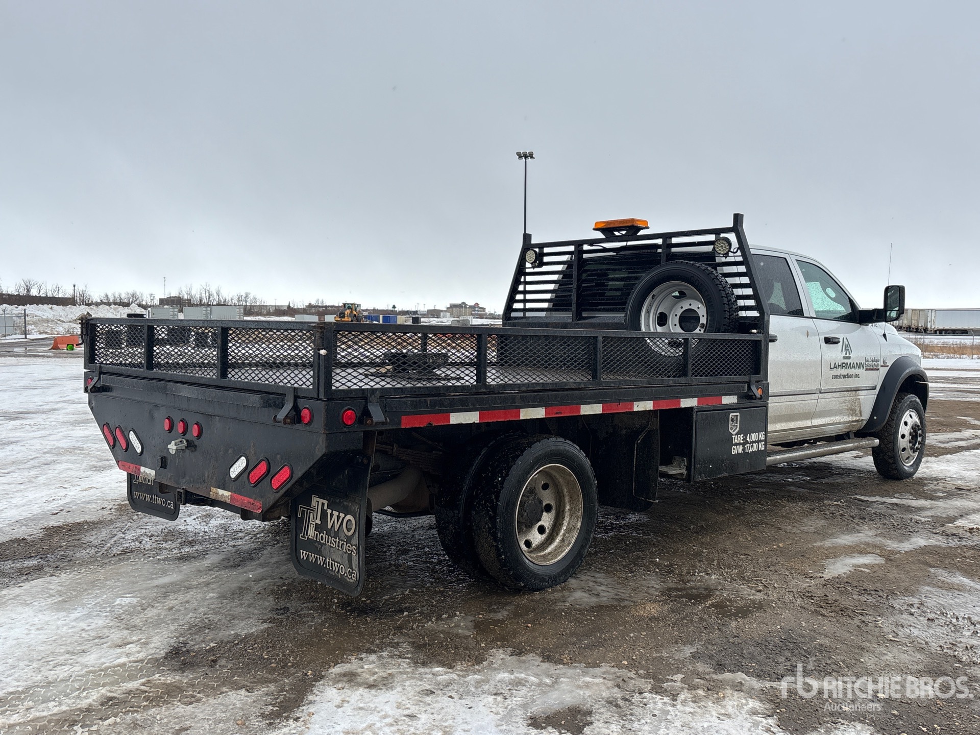 Located in Lane 43 Spot 24, Cummins 6 Cylinder 6.7 L Diesel Engine, 2017 US EPA Label, CARB Compliant, Requires Diesel Exhaust Fluid, 2861 Engine hrs, Exhaust Brake, Automatic Transmission, 7250 lb Front Axle, 13500 lb Rears, 19500 lb GVWR, Aluminum Wheels, 225/70R19.5, Spring Suspension, 197 in Wheelbase, 11 ft 8 in x 97 in Bed, 5th Wheel Hitch, Complete-Dispersal-for-Lahrmann-Construction-Inc