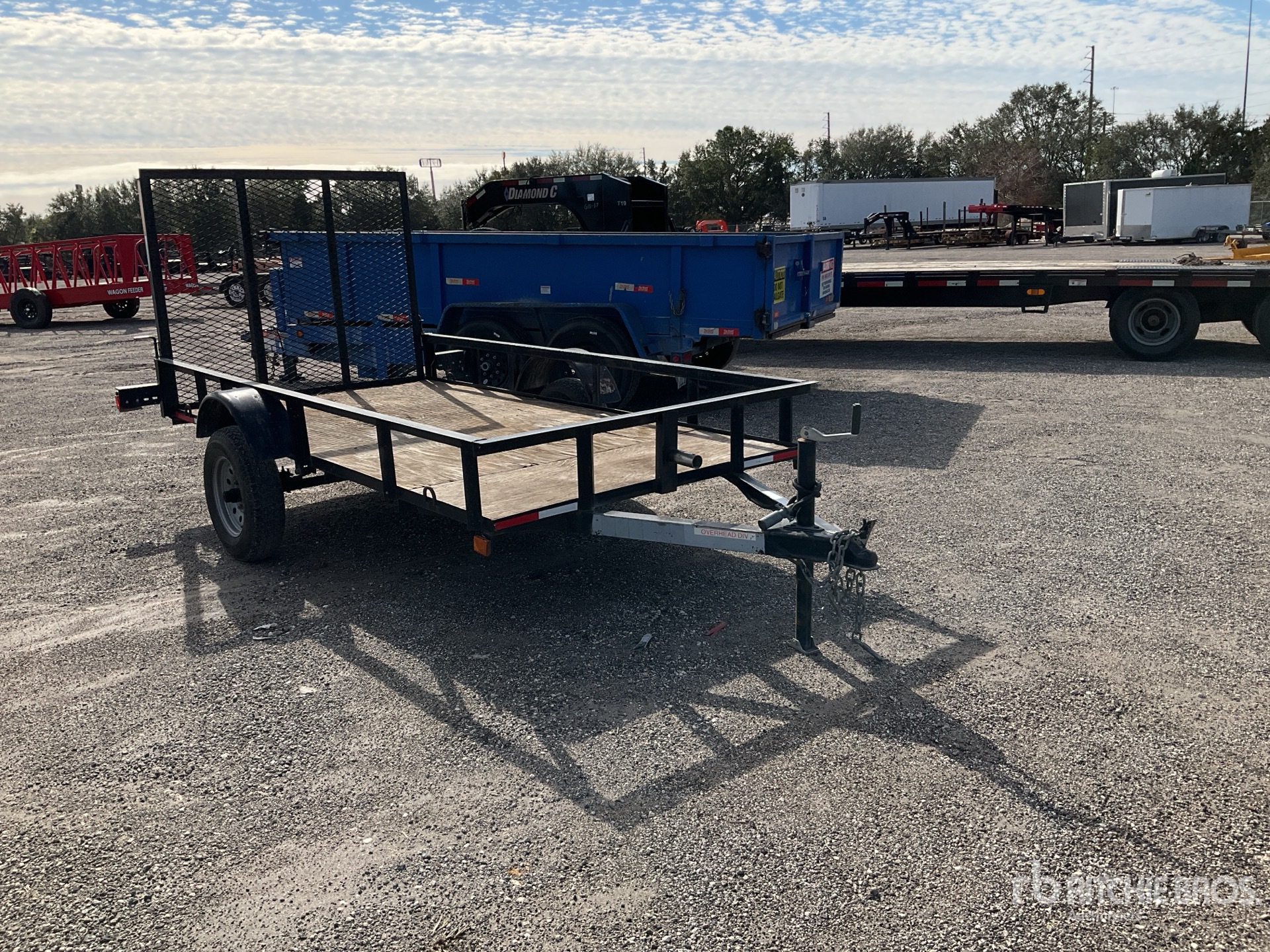 Ball Hitch, Spring Suspension, 60 in Deck Width, 62 in Overall Width, Ramp, Wood Flooring, 175/8.00/13 Tires, 2000 lb GVWR