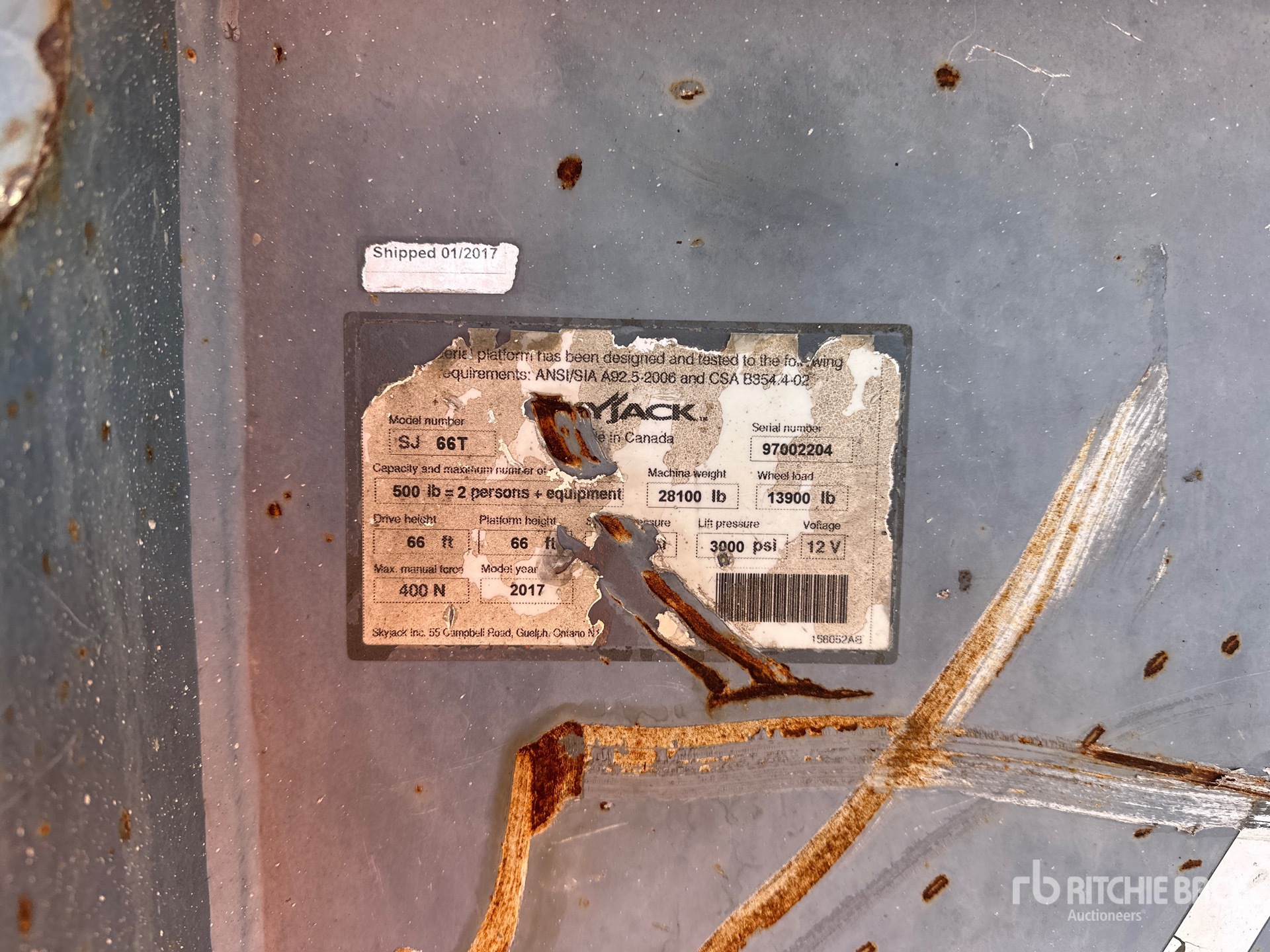 The detailed equipment information is limited in scope, and Ritchie Bros. Auctioneers has not inspected any aspects or components of the equipment other than those expressly set forth herein. Unless expressly stated, we make no representations or warranties, express or implied, concerning the equipment or its components, including without limitation any representations or warranties concerning functionality, conformity or compliance with any safety standard or requirement of any applicable authority or regulatory body, fitness for any particular purpose, or merchantability. You are strongly advised to perform your own detailed inspection of the equipment prior to bidding.