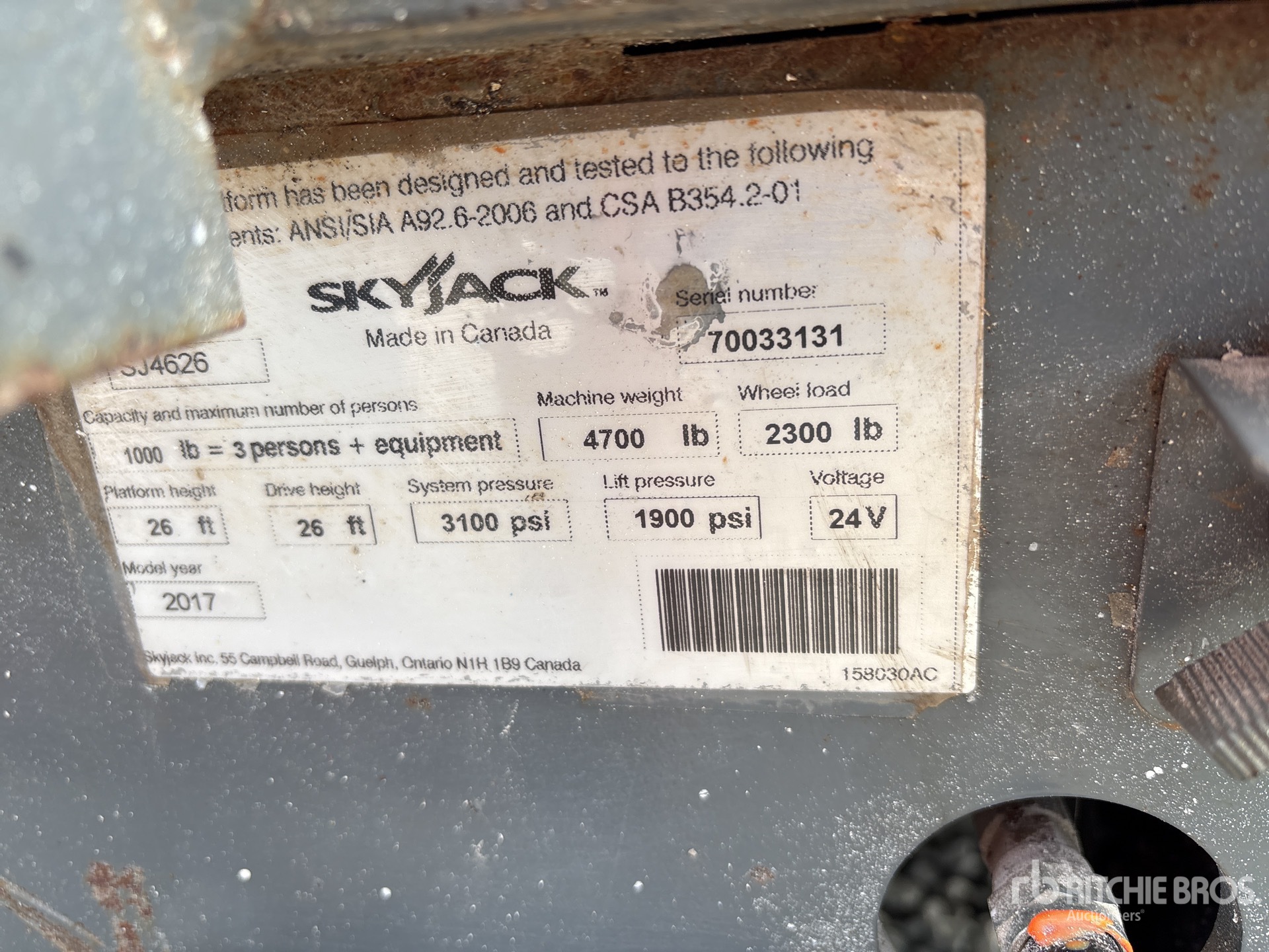 A qualified Ritchie Bros. employee collected detailed equipment information and performed functional tests on the key components of this asset. You, or a proxy, may also inspect any items on site prior to bidding on auction day.