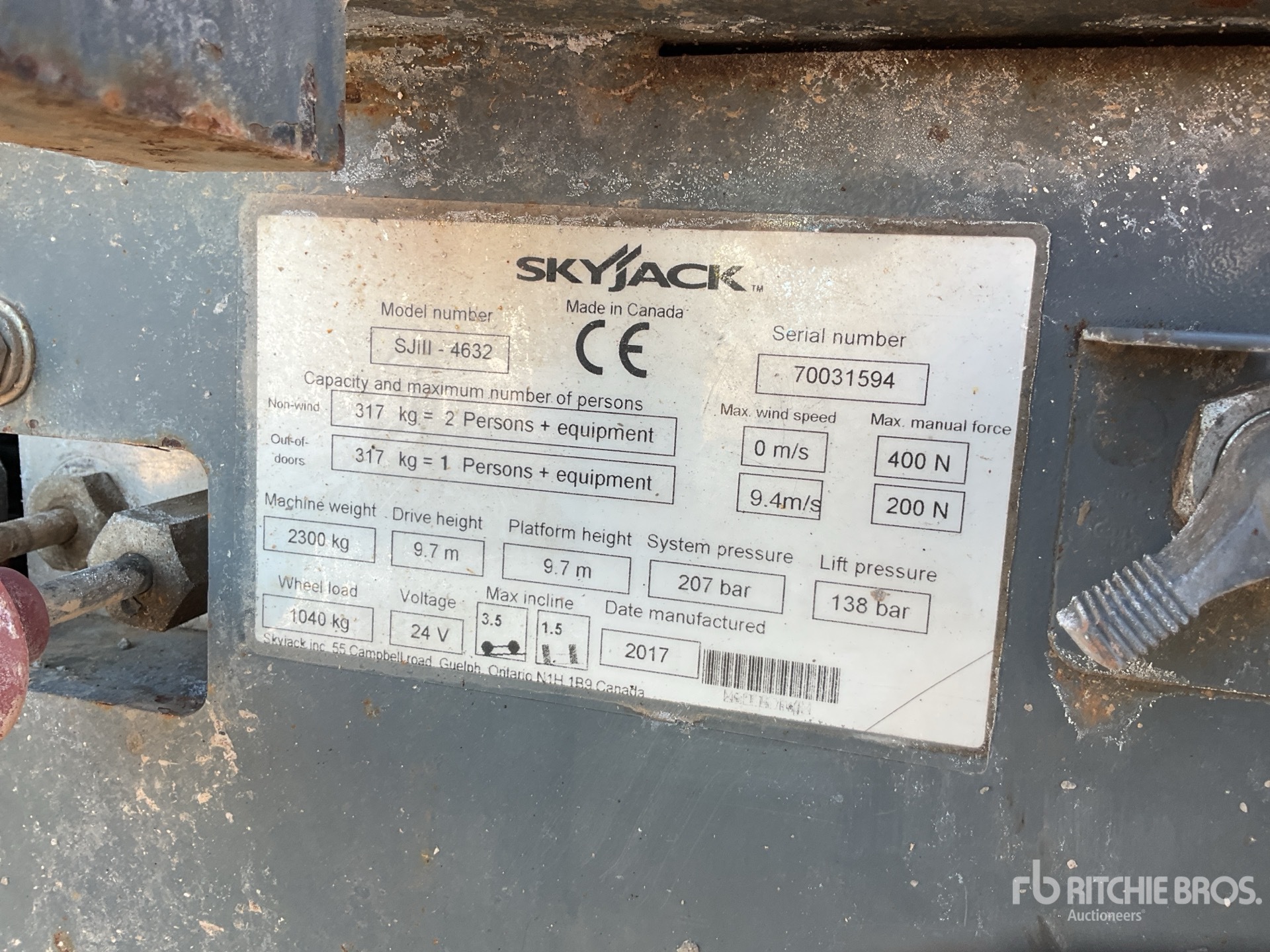 The detailed equipment information is limited in scope, and Ritchie Bros. Auctioneers has not inspected any aspects or components of the equipment other than those expressly set forth herein. Unless expressly stated, we make no representations or warranties, express or implied, concerning the equipment or its components, including without limitation any representations or warranties concerning functionality, conformity or compliance with any safety standard or requirement of any applicable authority or regulatory body, fitness for any particular purpose, or merchantability. You are strongly advised to perform your own detailed inspection of the equipment prior to bidding.