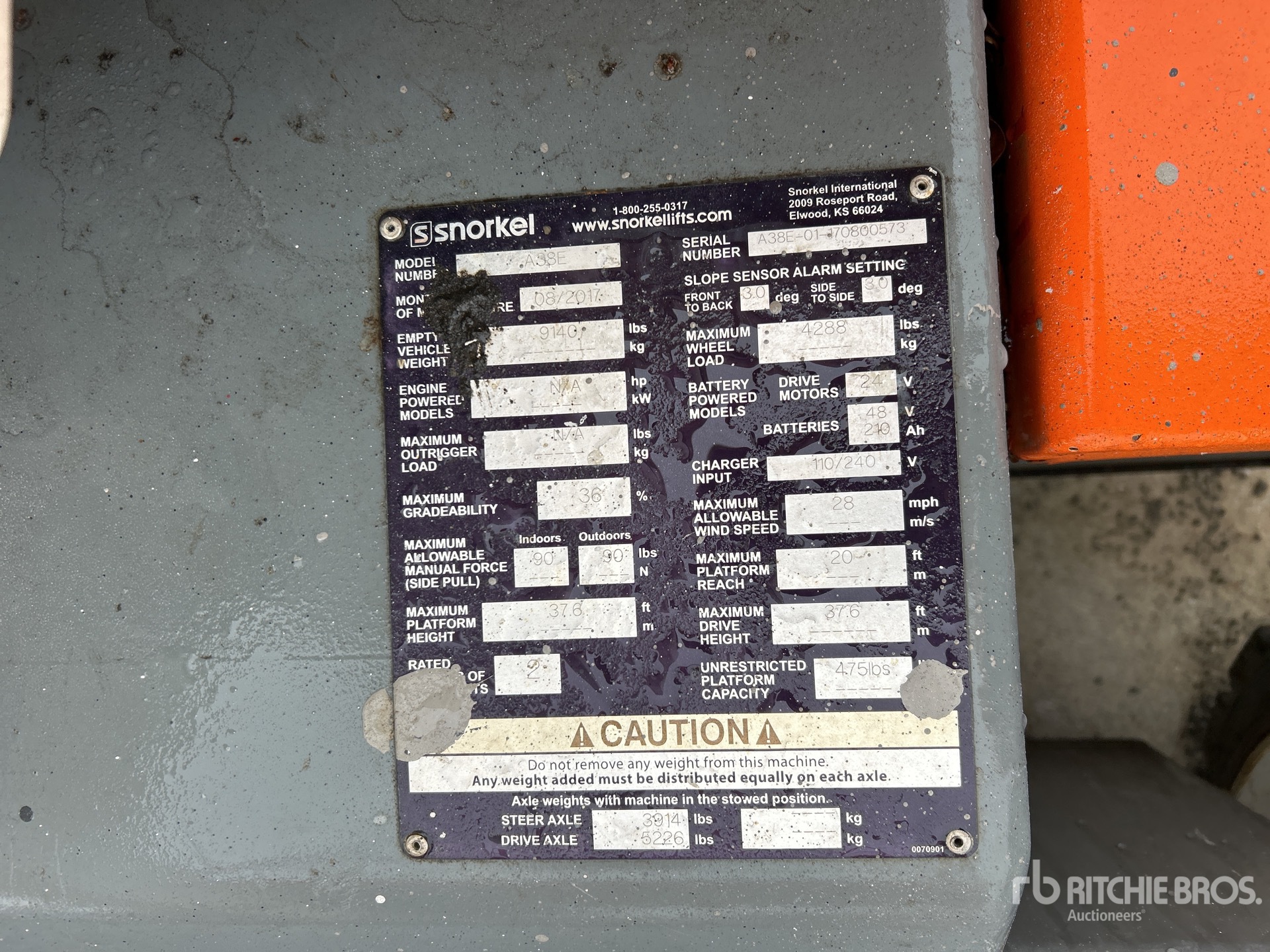 The detailed equipment information is limited in scope, and Ritchie Bros. Auctioneers has not inspected any aspects or components of the equipment other than those expressly set forth herein. Unless expressly stated, we make no representations or warranties, express or implied, concerning the equipment or its components, including without limitation any representations or warranties concerning functionality, conformity or compliance with any safety standard or requirement of any applicable authority or regulatory body, fitness for any particular purpose, or merchantability. You are strongly advised to perform your own detailed inspection of the equipment prior to bidding.