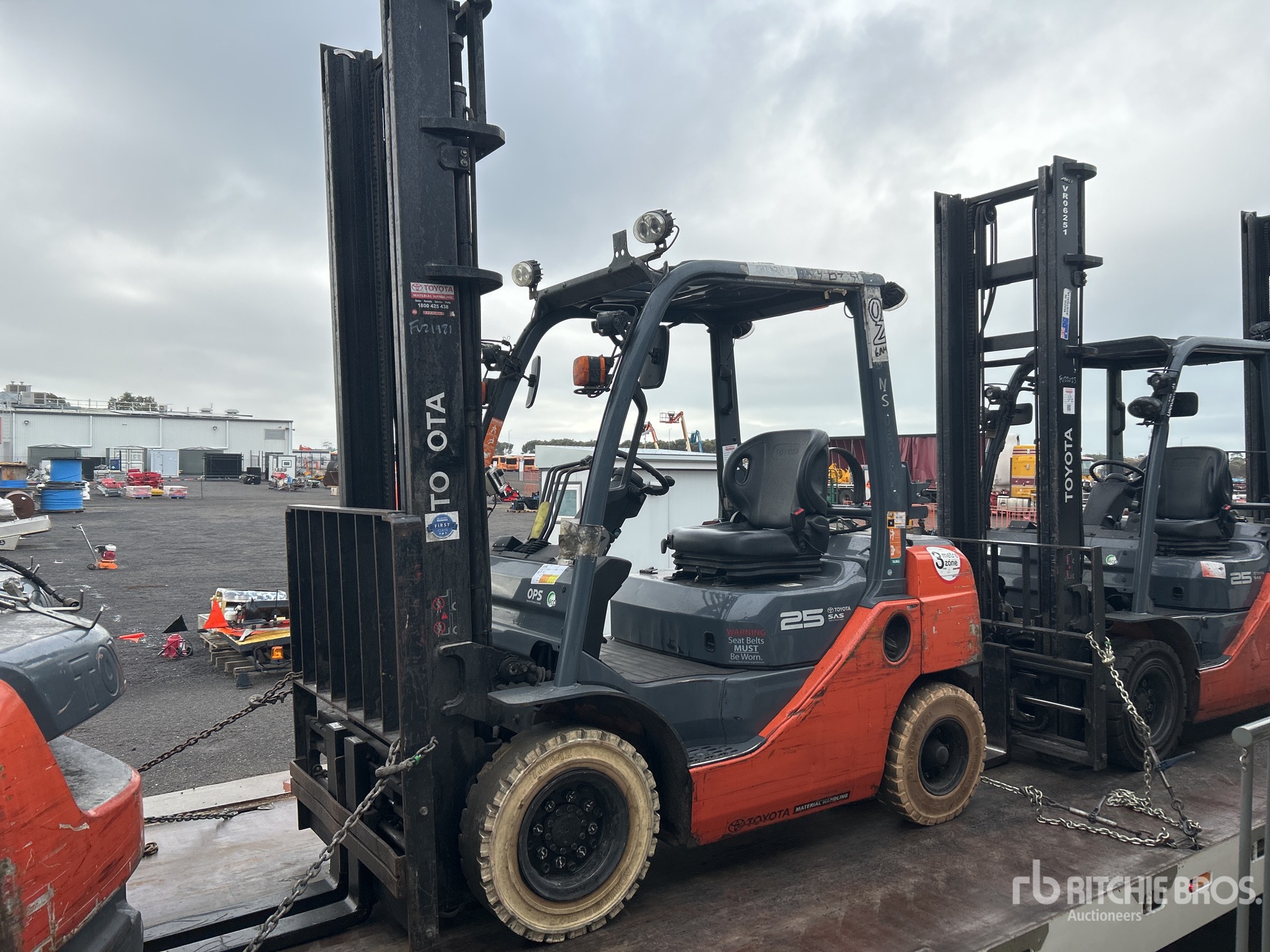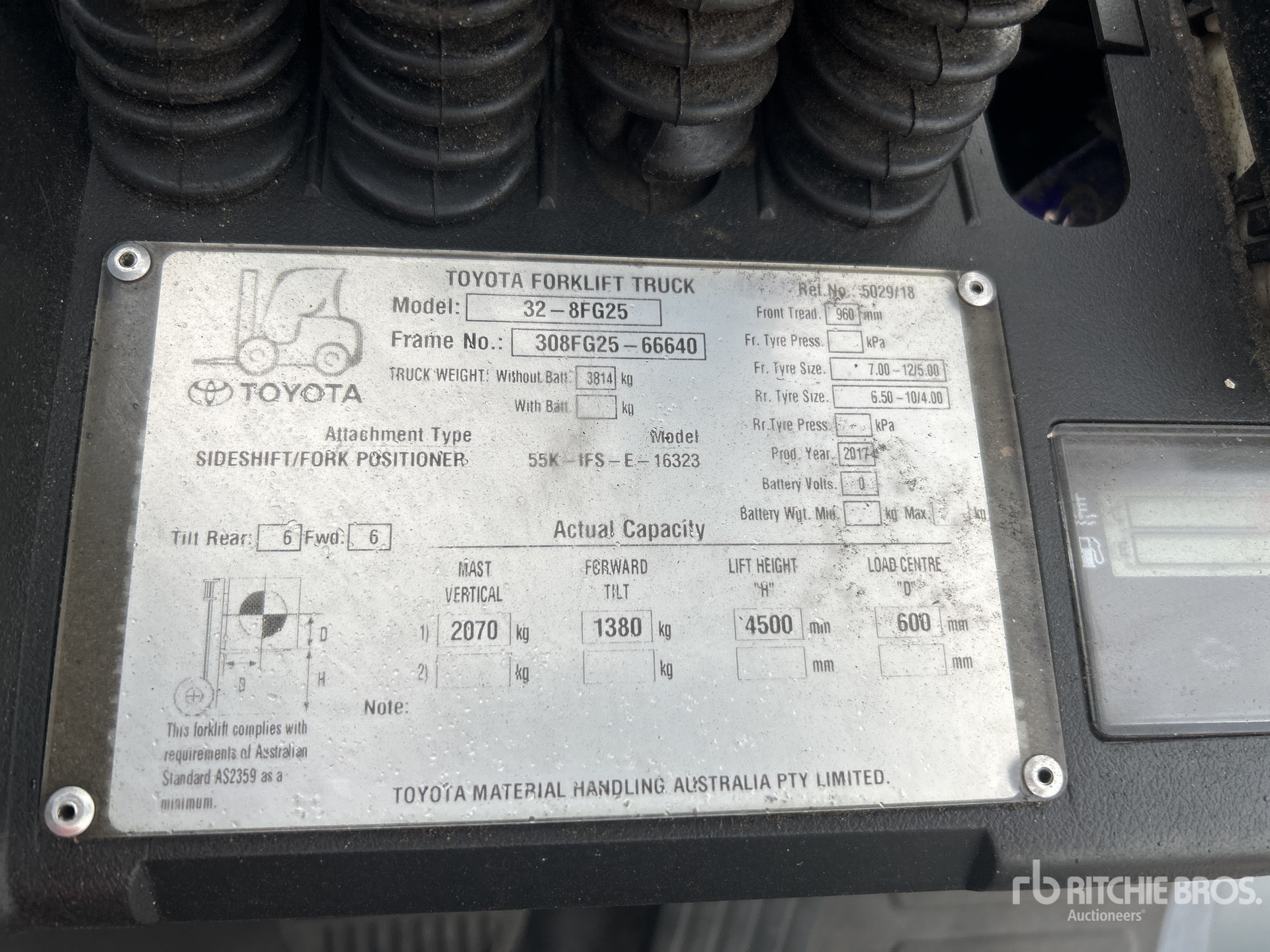 2 Stage Mast, 4500 mm Max Lift Height, 2900 mm Lowered Mast Height, Forks, Side Shift, Fork Positioner, Solid Pneumatic Tires, Dual Fuel Engine