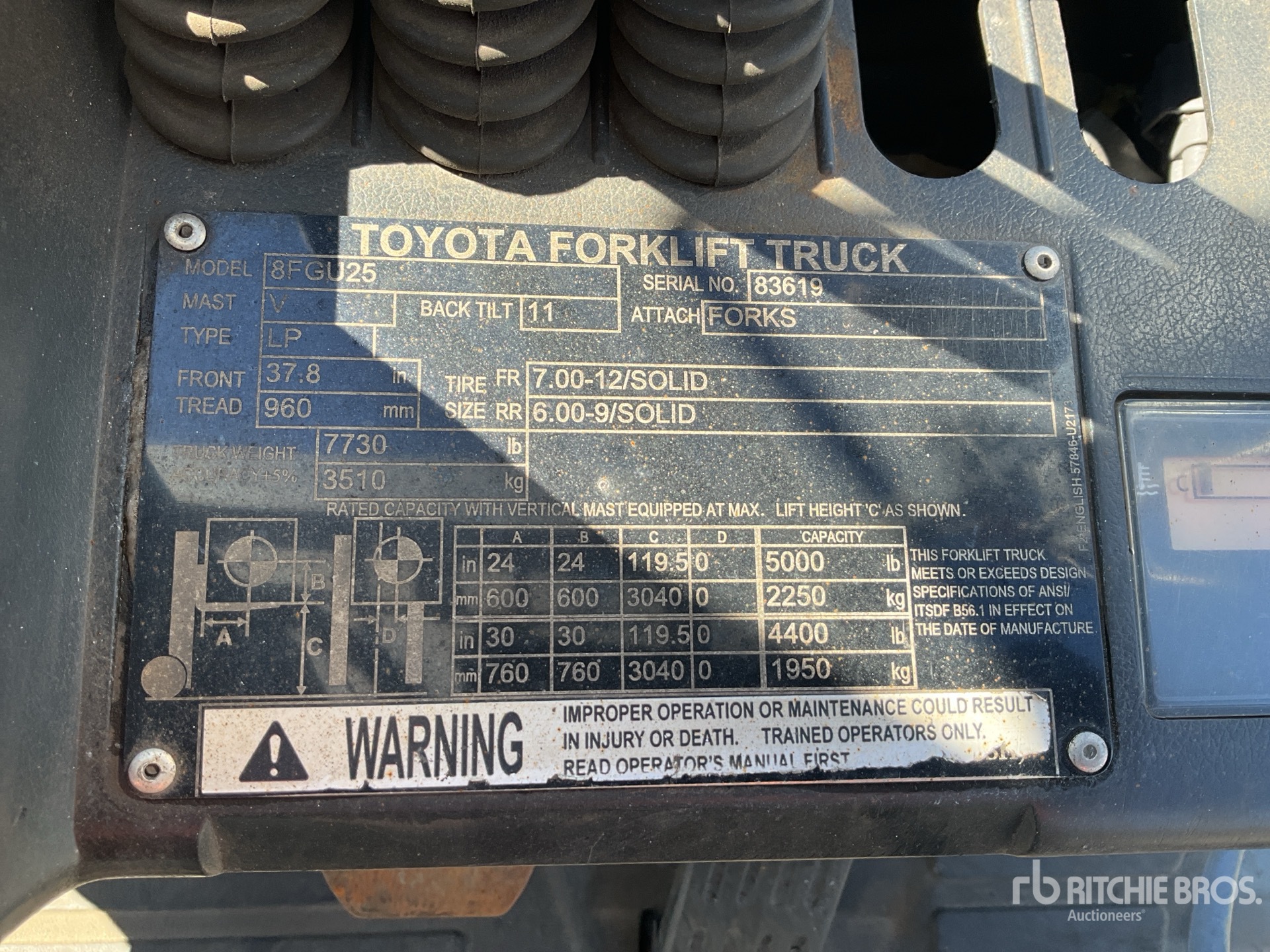 The detailed equipment information is limited in scope, and Ritchie Bros. Auctioneers has not inspected any aspects or components of the equipment other than those expressly set forth herein. Unless expressly stated, we make no representations or warranties, express or implied, concerning the equipment or its components, including without limitation any representations or warranties concerning functionality, conformity or compliance with any safety standard or requirement of any applicable authority or regulatory body, fitness for any particular purpose, or merchantability. You are strongly advised to perform your own detailed inspection of the equipment prior to bidding.