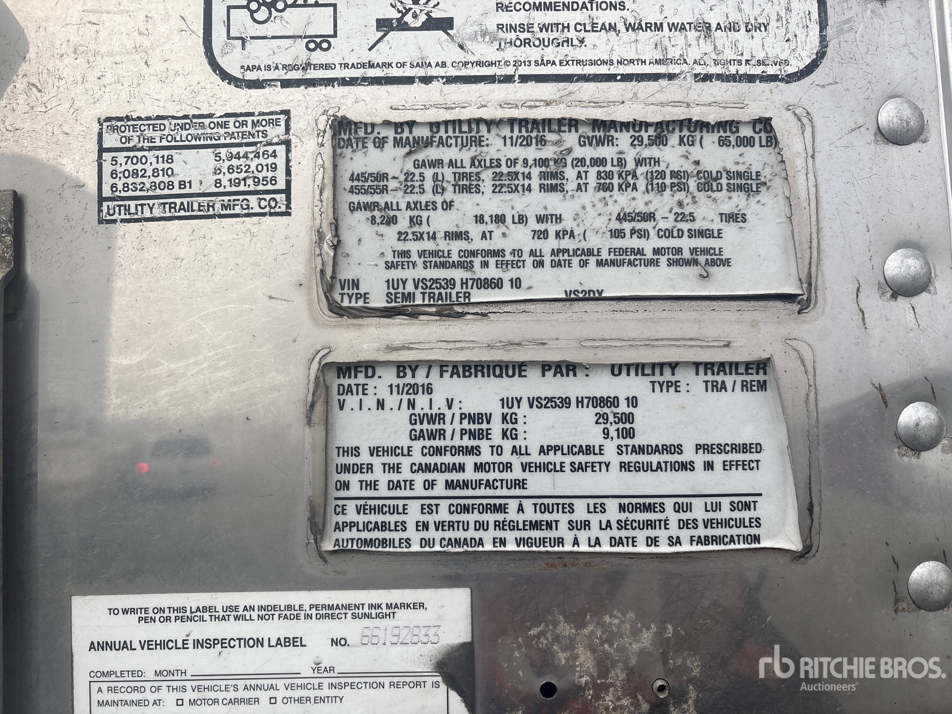 The detailed equipment information is limited in scope, and Ritchie Bros. Auctioneers has not inspected any aspects or components of the equipment other than those expressly set forth herein. Unless expressly stated, we make no representations or warranties, express or implied, concerning the equipment or its components, including without limitation any representations or warranties concerning functionality, conformity or compliance with any safety standard or requirement of any applicable authority or regulatory body, fitness for any particular purpose, or merchantability. You are strongly advised to perform your own detailed inspection of the equipment prior to bidding.