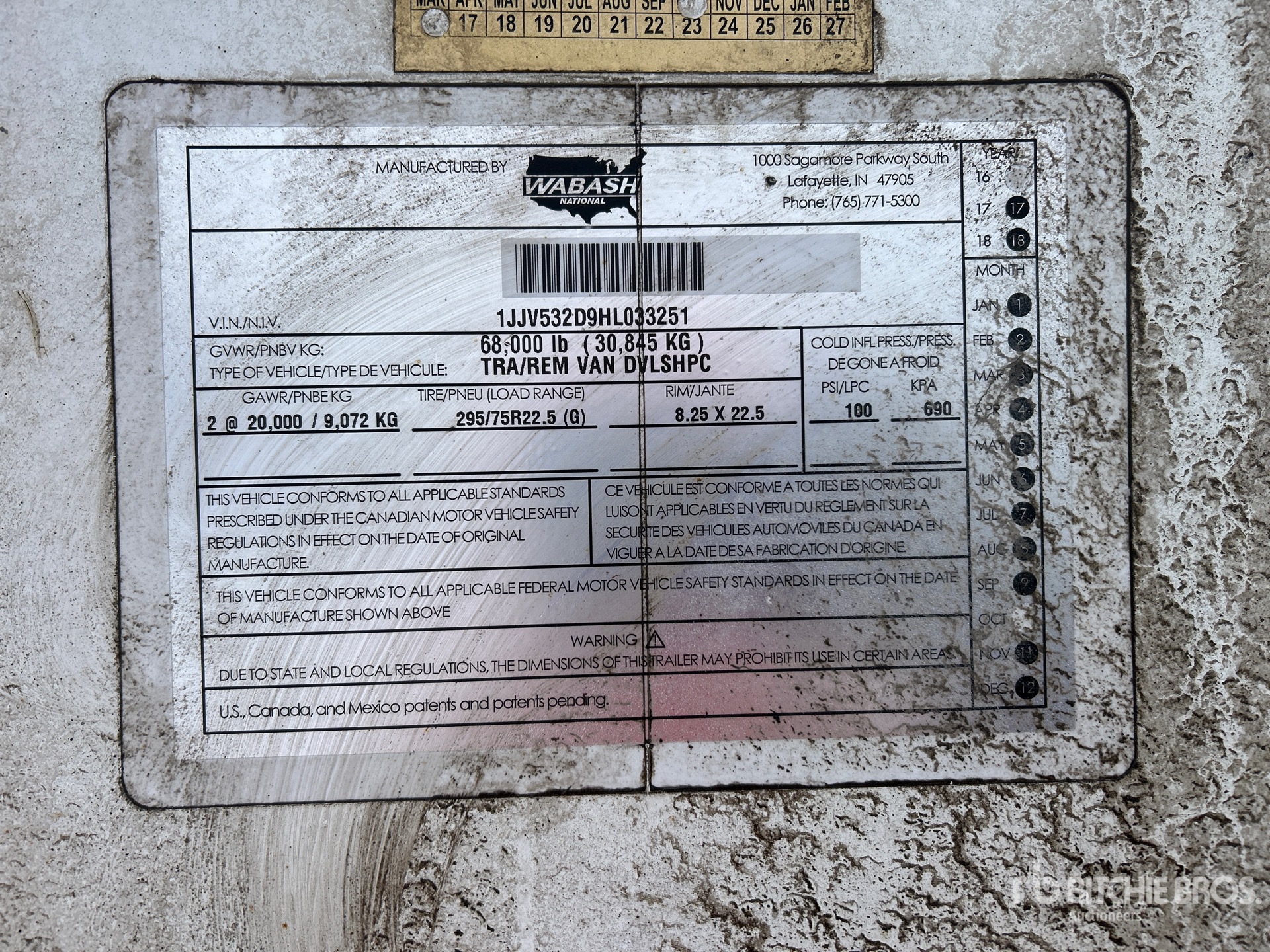 2017 Wabash RH759N-8 53 ft x 102 in T/A Van Trailer