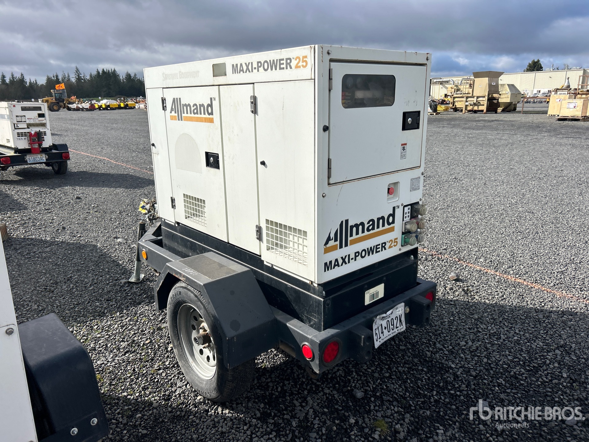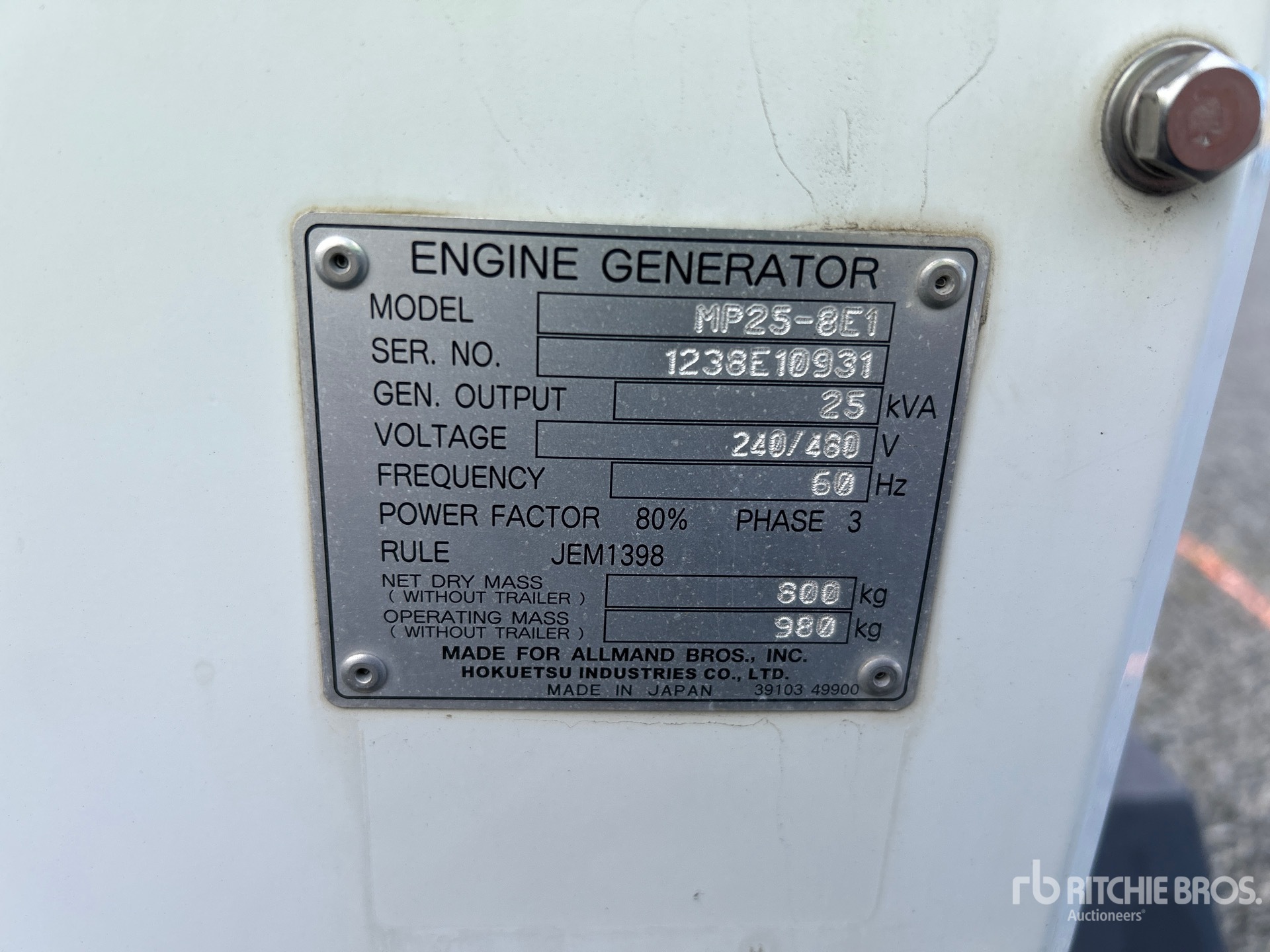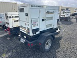 2018 US EPA Label, Isuzu 4 Cylinder 30 kW Gasoline Engine, 25 kVA/ Rated 3 Phase Output, 480 V / 240 V Rated Voltage, 240 V / 120 V Rated Voltage, 240 V & 120 V Receptacles, Sound Attenuated, Bottom Mounted Fuel Tank, Ball Hitch Carrier Trailer, Surge Brakes