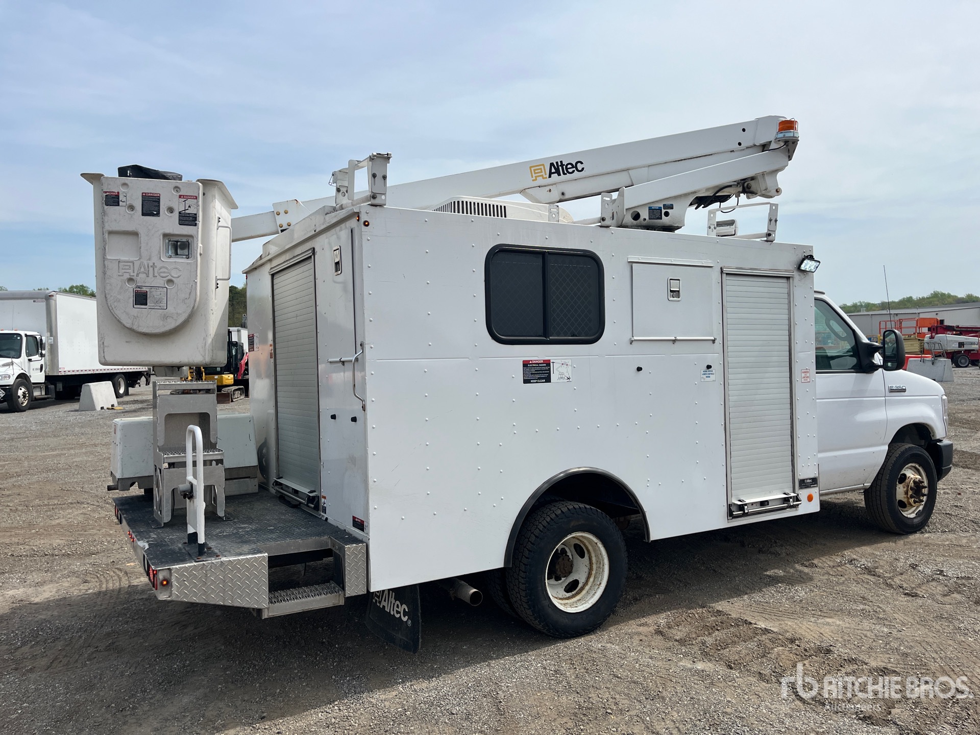 Located in Lane 46 Spot 31, Ford V10 6.8 L Gasoline Engine, 2019 US EPA Label, Automatic Transmission, 4600 lb Front Axle, 7800 lb Rears, 11500 lb GVWR, 225/75R16 Front Tires, 225/75R16 Rear Tires, Spring Suspension, 350 lb Capacity, Center Mounted, One-Person Articulating-Telescopic Boom, Remote Control w/Cord, Onan Gasoline Generator Set