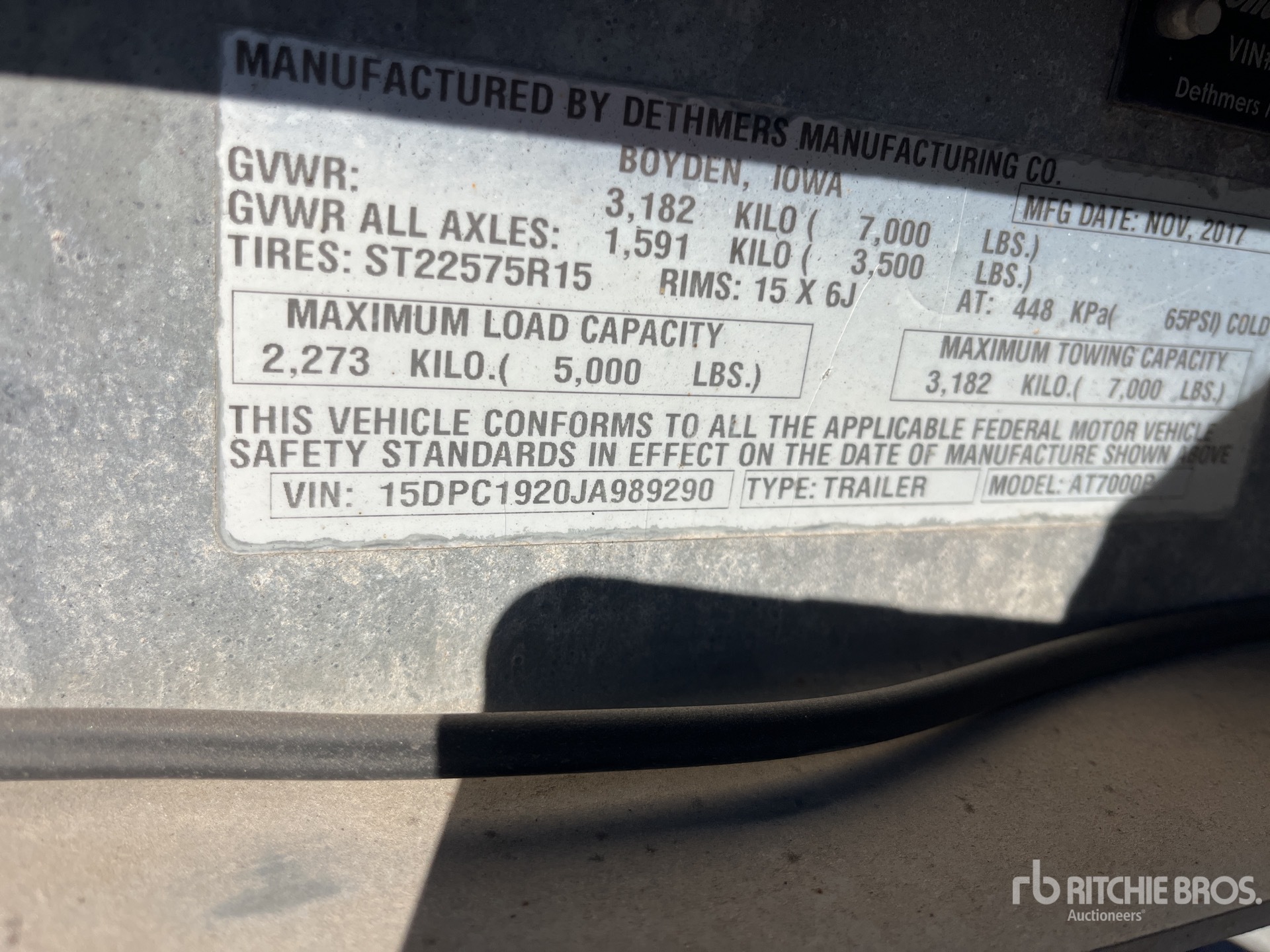 Galvanized Frame Ball Hitch, Torsion Axle, Surge Brakes, Soft Ties, 225/75R15 Tires, 7000 lb GVWR