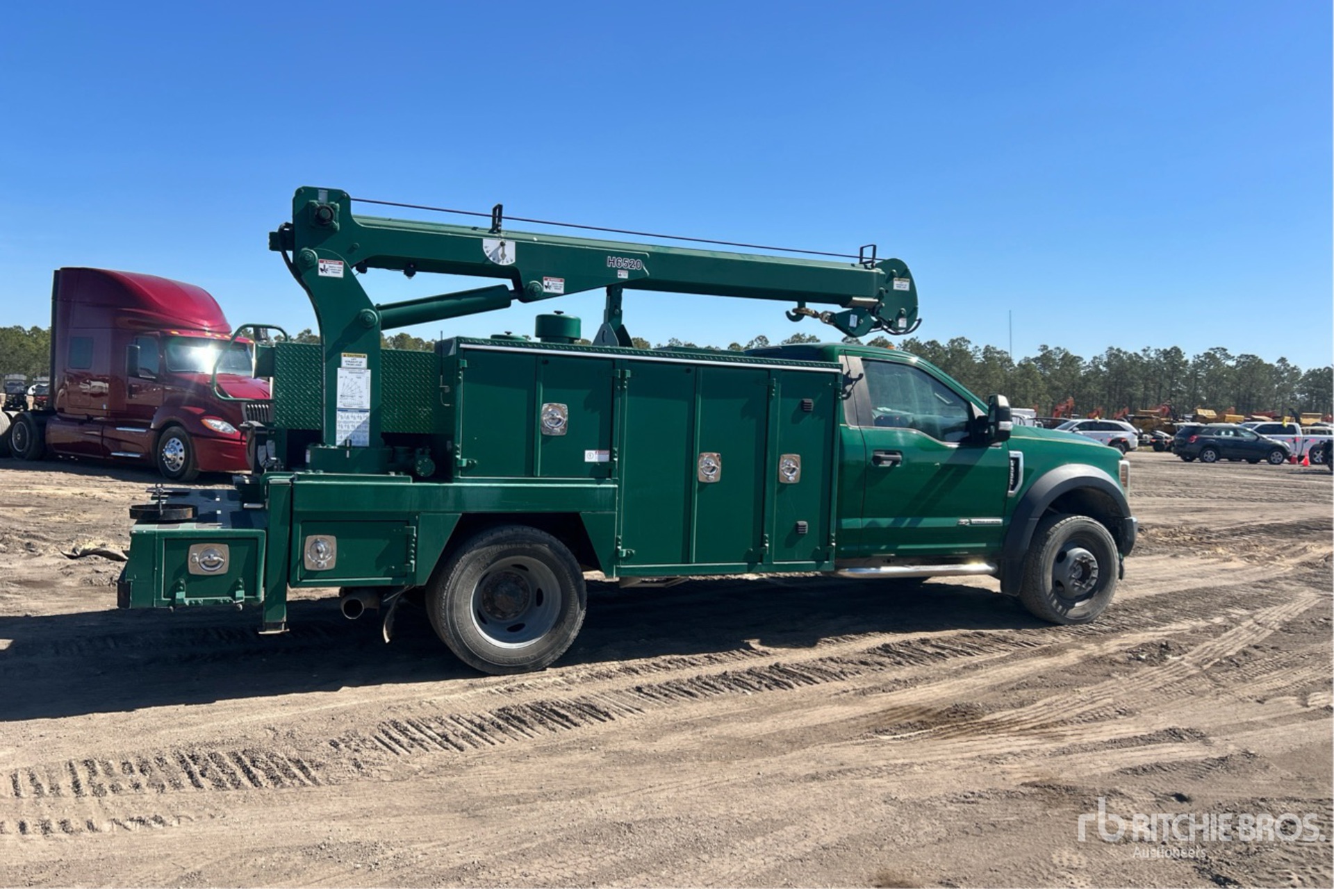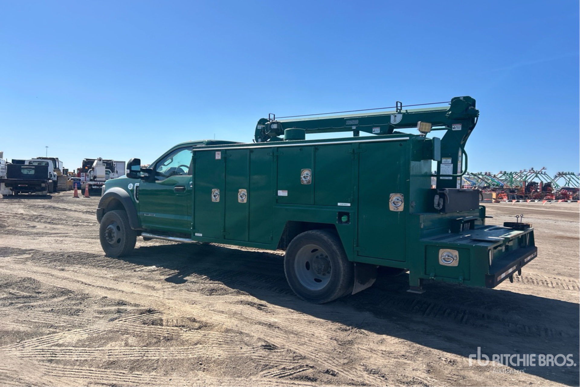 6 Cylinder 6.7 L Diesel Engine, 2018 US EPA Label, Automatic Transmission, 6500 lb Front Axle, 14706 lb Rears, 19500 lb GVWR, 225/70R19.5, Spring Suspension, 169 in Wheelbase, PTO, 12 ft Body, Hydraulic Stabilizers, Maintainer 6500 lb 2 Section Hydraulic Crane, Wireless Remote Control