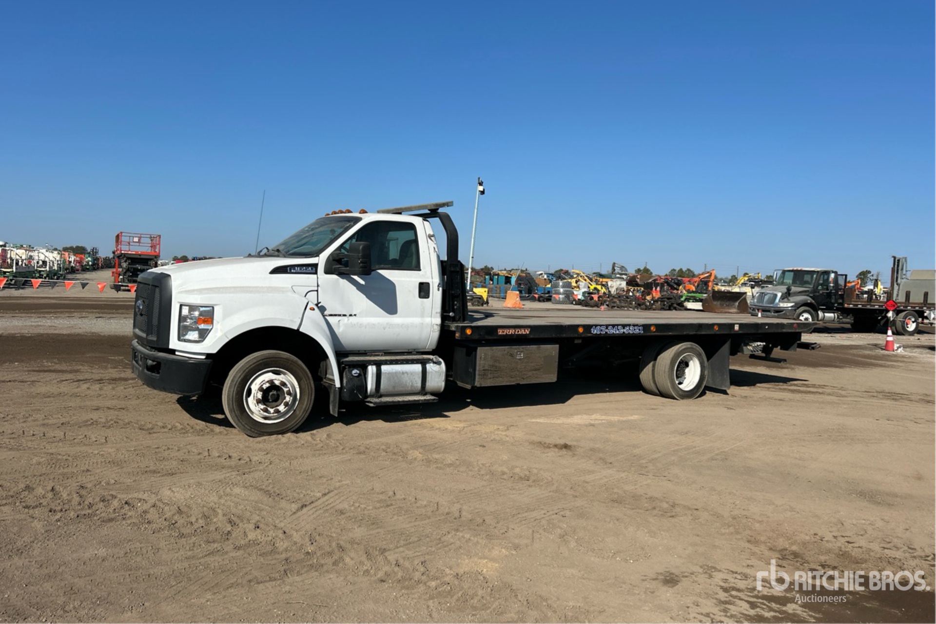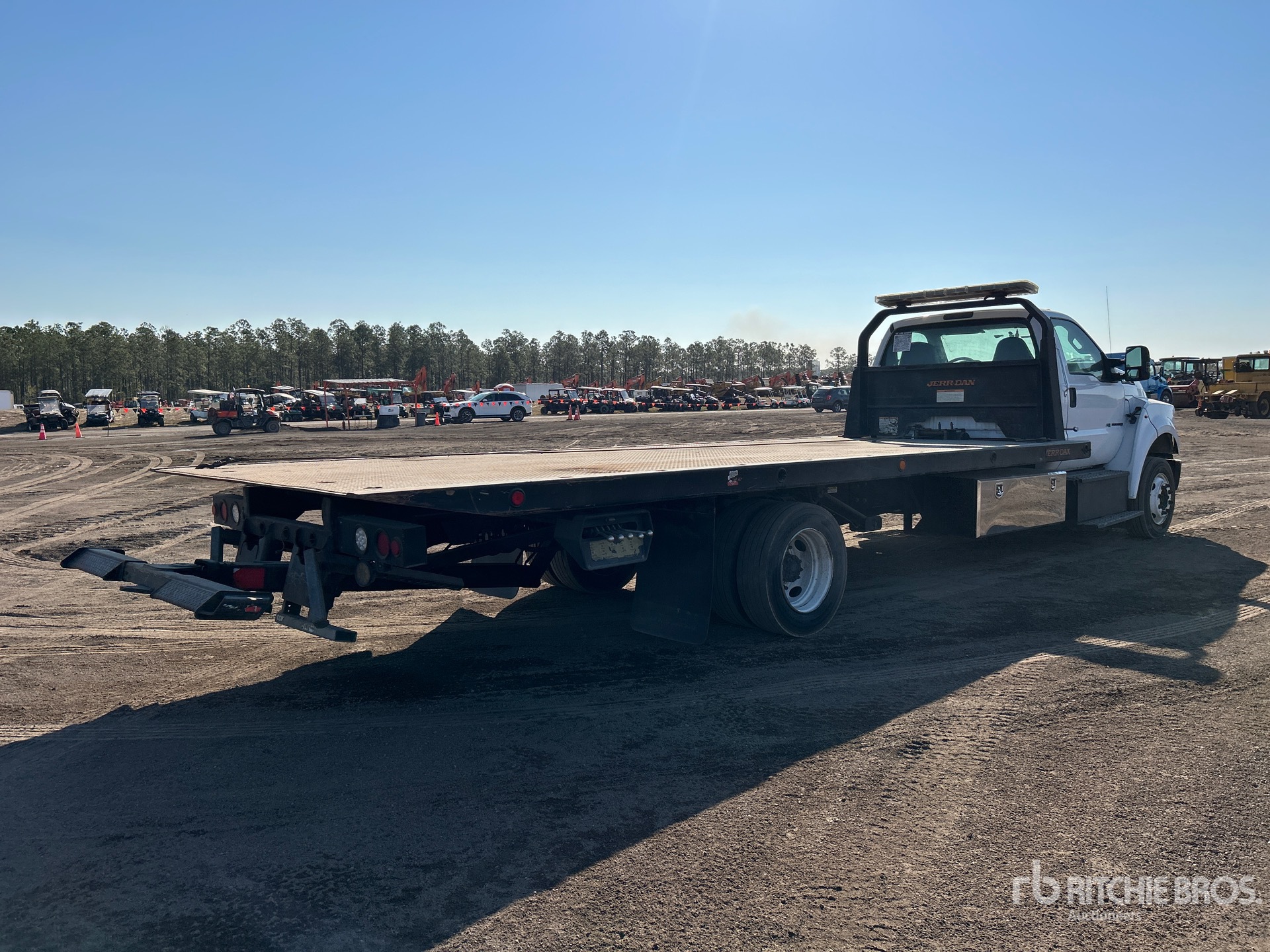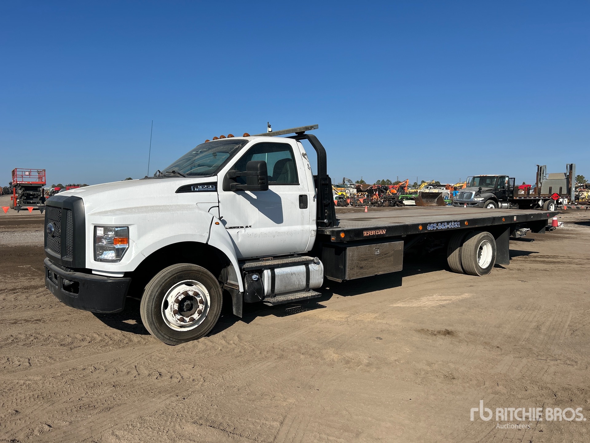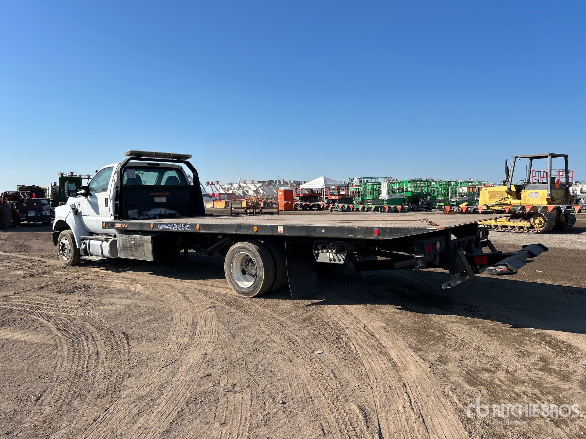 Located in Lane 44 Spot 12, Ford 4V F-Series 6.7 L Diesel 270 hp Engine, 2018 US EPA Label, CARB Compliant, 16791 Engine hrs, Exhaust Brake, Automatic Transmission, 8500 lb Front Axle, 17500 lb Rears, 26000 lb GVWR, 245/70R19.5, Spring Suspension, 226 in Wheelbase, PTO, Jerr-Dan 22SRR6T-W-LP Rollback Body, 22 ft x 102 in Bed, Ramsey HD234 Winch, Hydraulic Wheel Lift