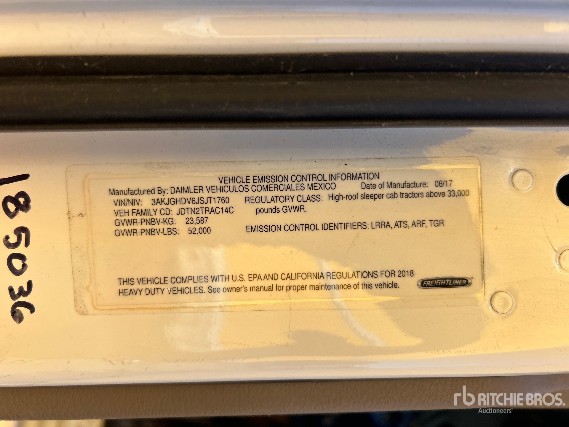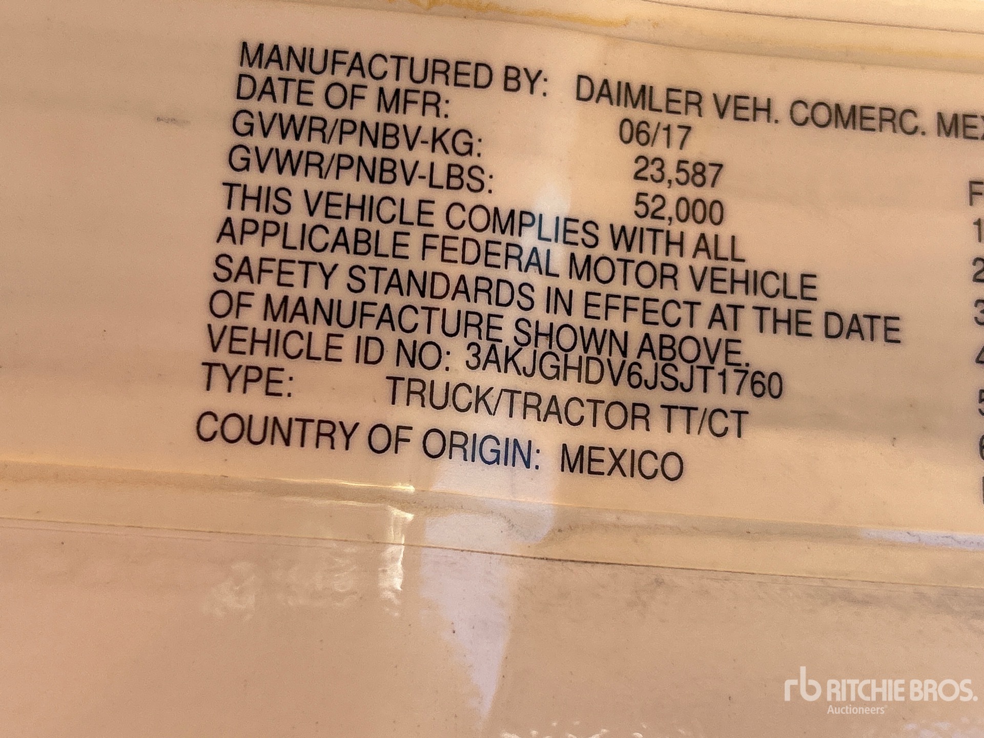 The detailed equipment information is limited in scope, and Ritchie Bros. Auctioneers has not inspected any aspects or components of the equipment other than those expressly set forth herein. Unless expressly stated, we make no representations or warranties, express or implied, concerning the equipment or its components, including without limitation any representations or warranties concerning functionality, conformity or compliance with any safety standard or requirement of any applicable authority or regulatory body, fitness for any particular purpose, or merchantability. You are strongly advised to perform your own detailed inspection of the equipment prior to bidding.