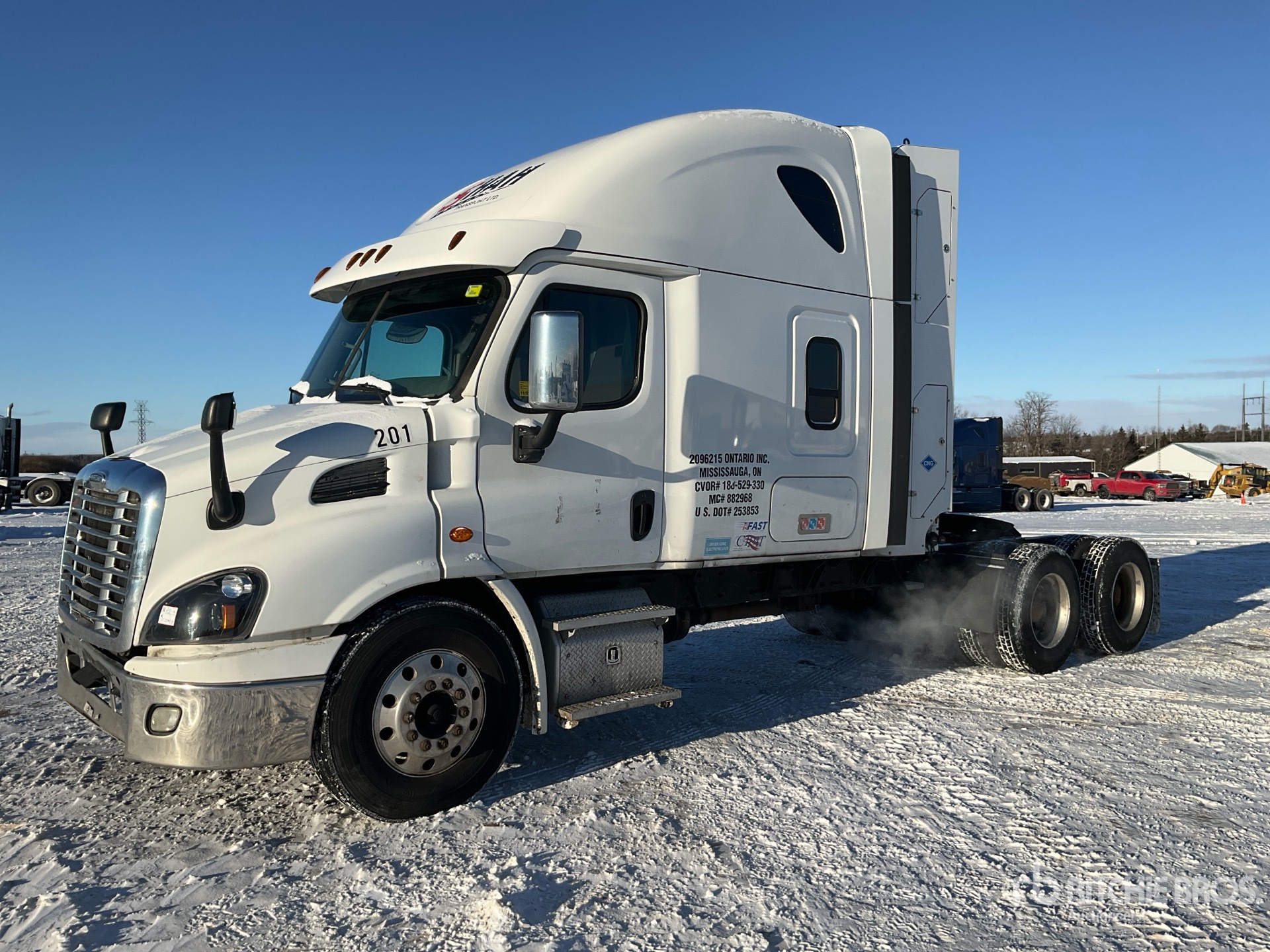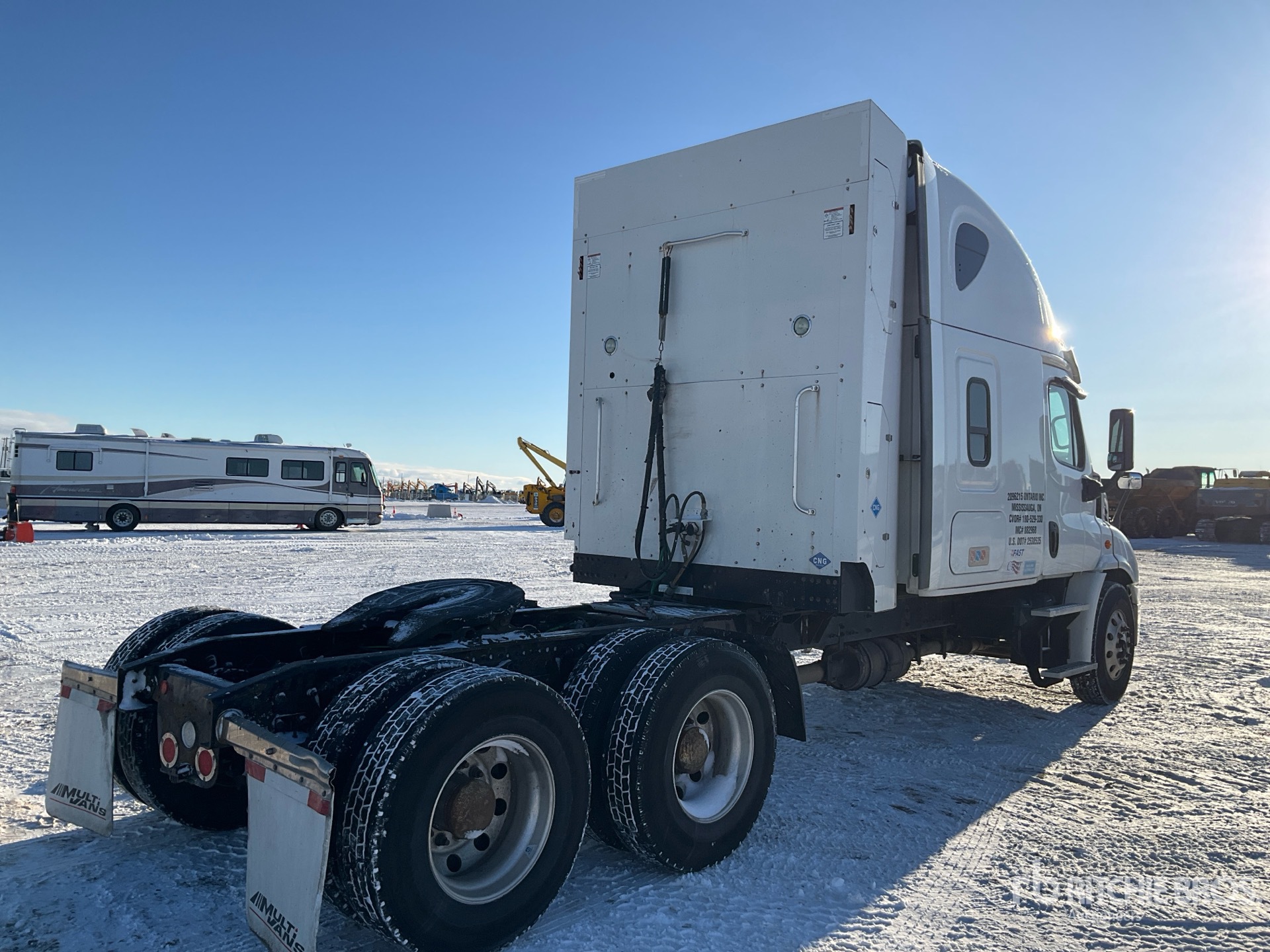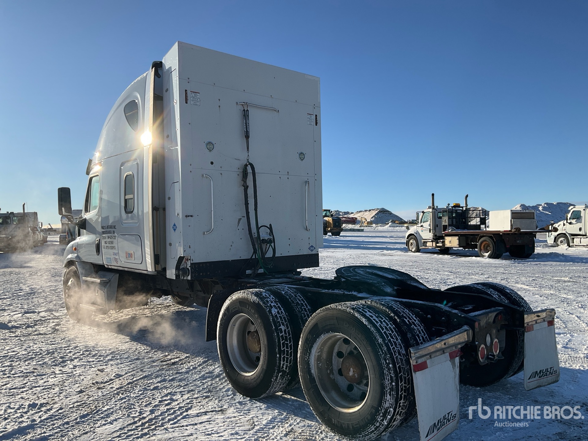 Located in Lane 8 Spot 35, Cummins ISX12G 400 hp Engine, Eaton Fuller FO-16E313A-MHP Ultrashift Automated Transmission, 14600 lb Front Axle, 40000 lb Rears, 54600 lb GVWR, Engine Brake, 70 in High Rise Sleeper Cab, Bunk Beds, 240 in Wheelbase, Air Suspension, Aluminum Wheels, 11R22.5, Air Sliding 5th Wheel
