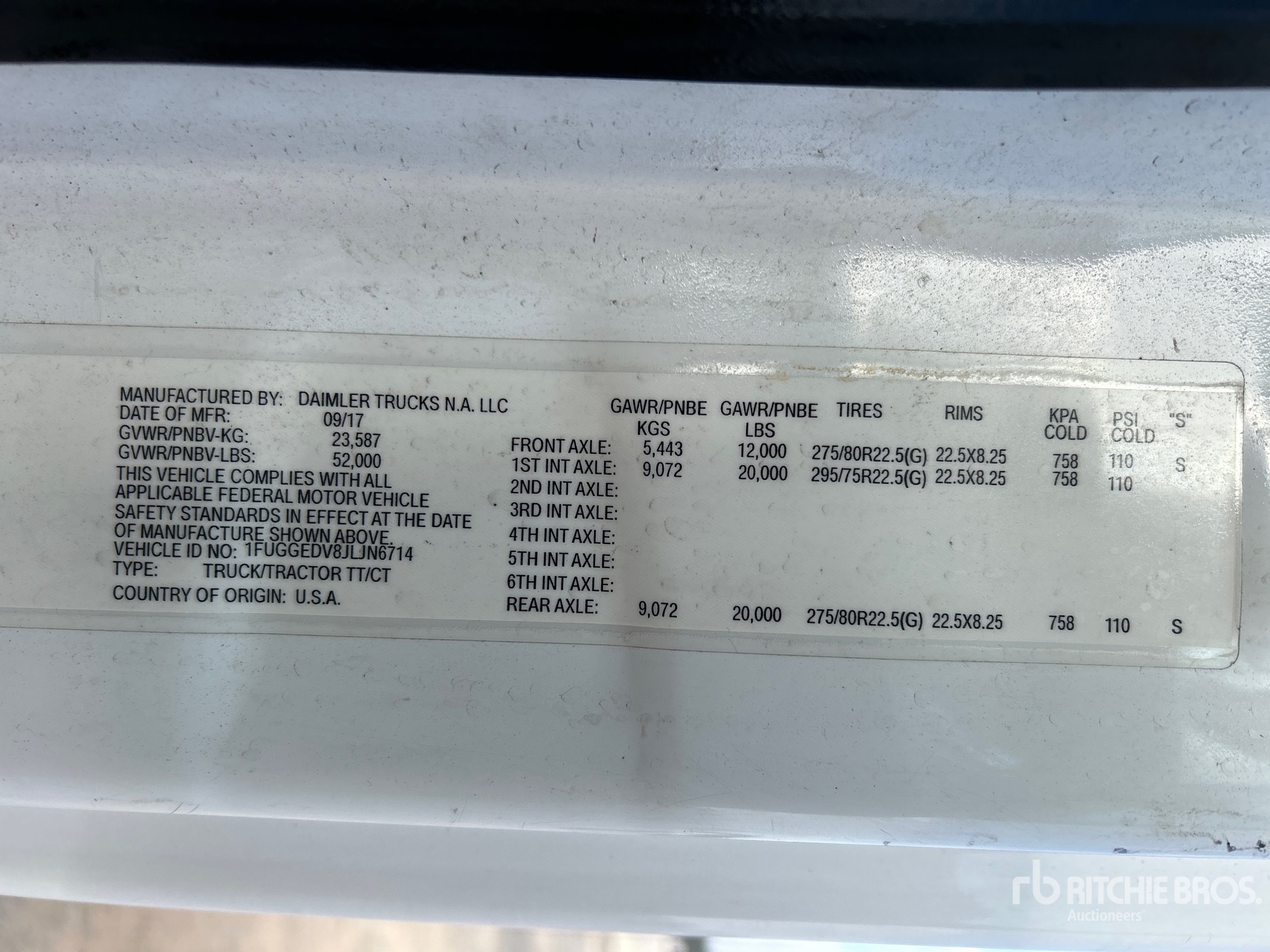Located in Lane 30 Spot 44, Detroit DD13 435 hp Engine, 2017 US EPA Label, Detroit DT12-DB-1550 12-Speed Automated Transmission, 12000 lb Front Axle, 40000 lb Rears, 52000 lb GVWR, 175 in Wheelbase, Air Suspension, 275/80R22.5, Air Sliding 5th Wheel, Dual Fuel Tanks