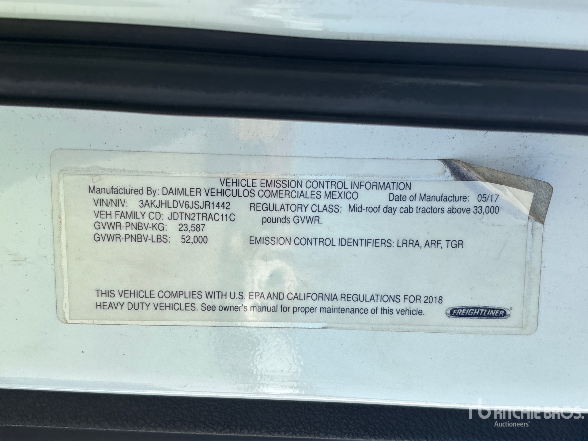 Detroit DD13 435 hp Engine, 2017 US EPA Label, 9194 Engine hrs, Detroit DT12-1550-OH1 12-Speed Automated Transmission, 12000 lb Front Axle, 40000 lb Rears, 52000 lb GVWR, Engine Brake, 178 in Wheelbase, Air Suspension, 11R22.5, Air Sliding 5th Wheel, Dual Fuel Tanks