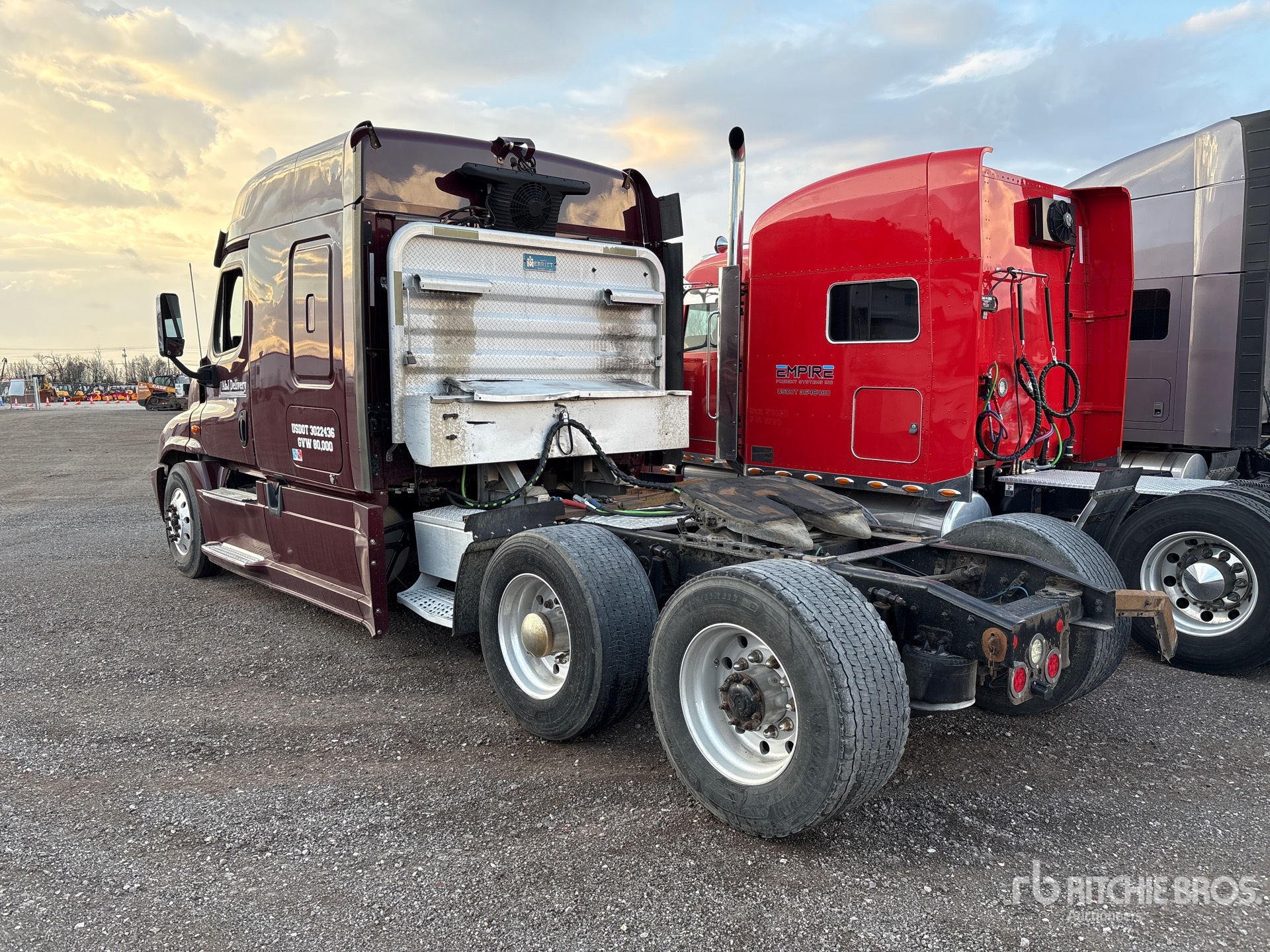 Detroit DD13 400 hp Engine, 2017 US EPA Label, Detroit DT12-DA-1750 12-Speed Automated Transmission, 12500 lb Front Axle, 40000 lb Rears, 52500 lb GVWR, Engine Brake, 72 in Mid Roof Sleeper Cab, 234 in Wheelbase, Air Suspension, Aluminum Wheels, 11R22.5 Front Tires, 445/50R22.5 Super Singles Rear Tires, Air Sliding 5th Wheel, Dual Fuel Tanks, Headache Rack