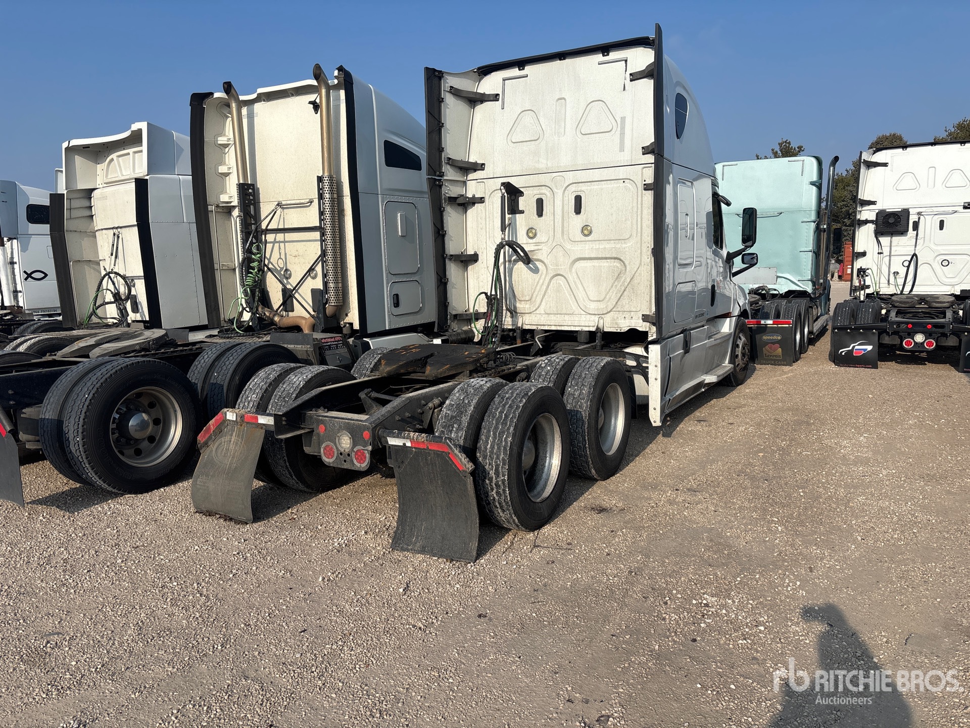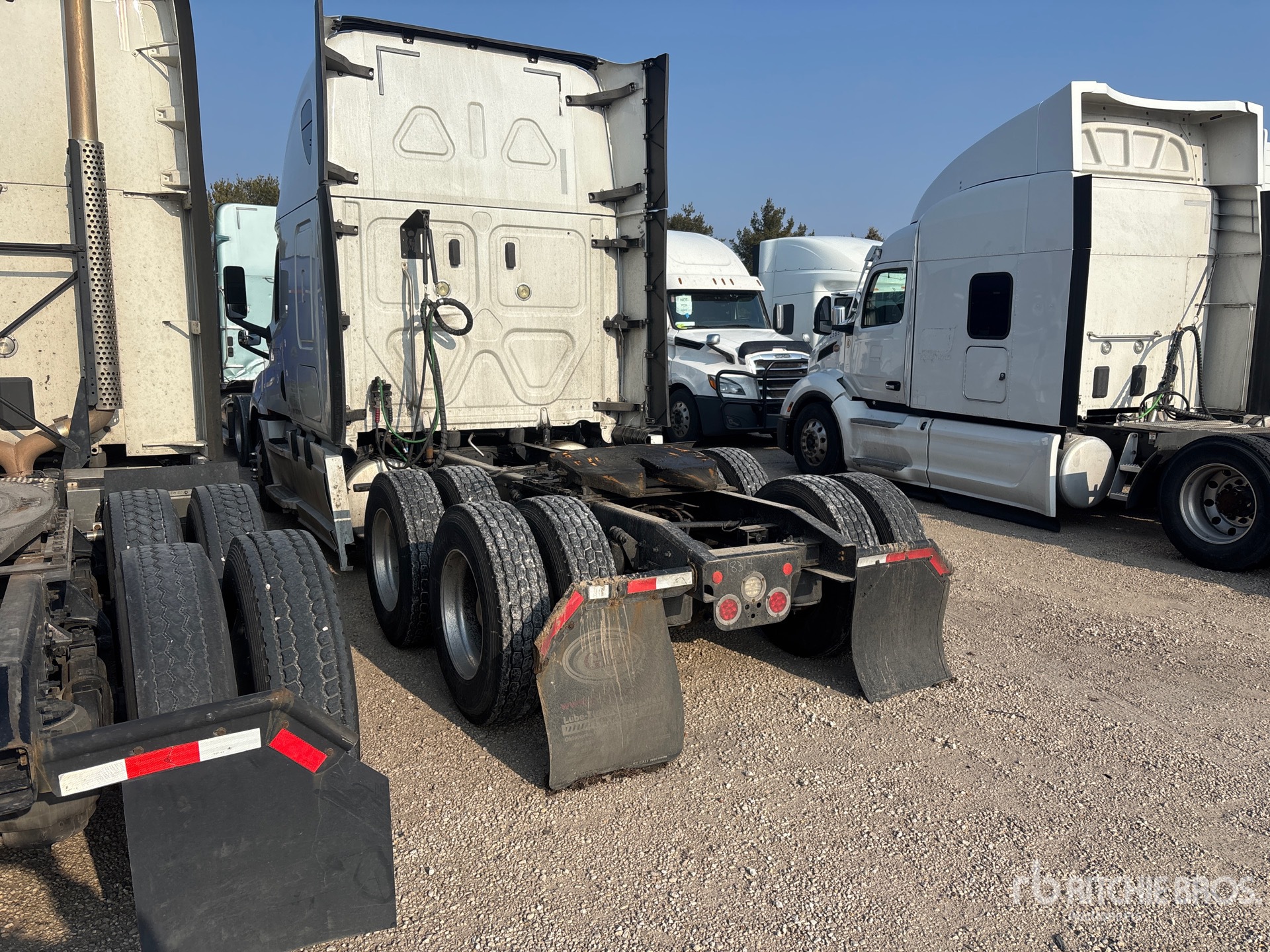 Detroit DD15 400 hp Engine, 2017 US EPA Label, Detroit DT12-1750-DH1 12-Speed Automated Transmission, 12000 lb Front Axle, 40000 lb Rears, 52000 lb GVWR, Engine Brake, 70 in High Rise Sleeper Cab, Bunk Beds, 227 in Wheelbase, Air Suspension, Aluminum Wheels, 295/75R22.5, Air Sliding 5th Wheel, Dual Fuel Tanks