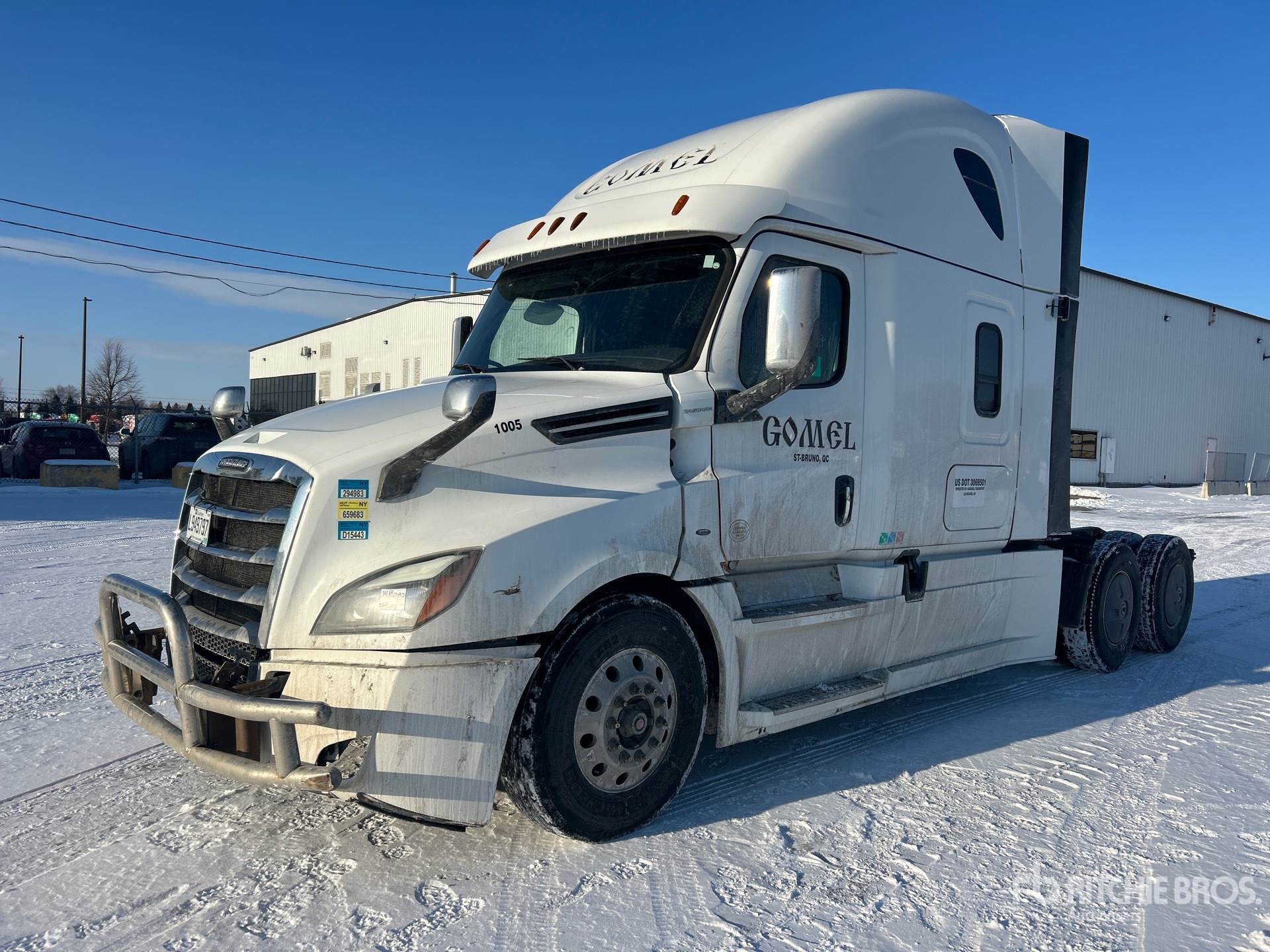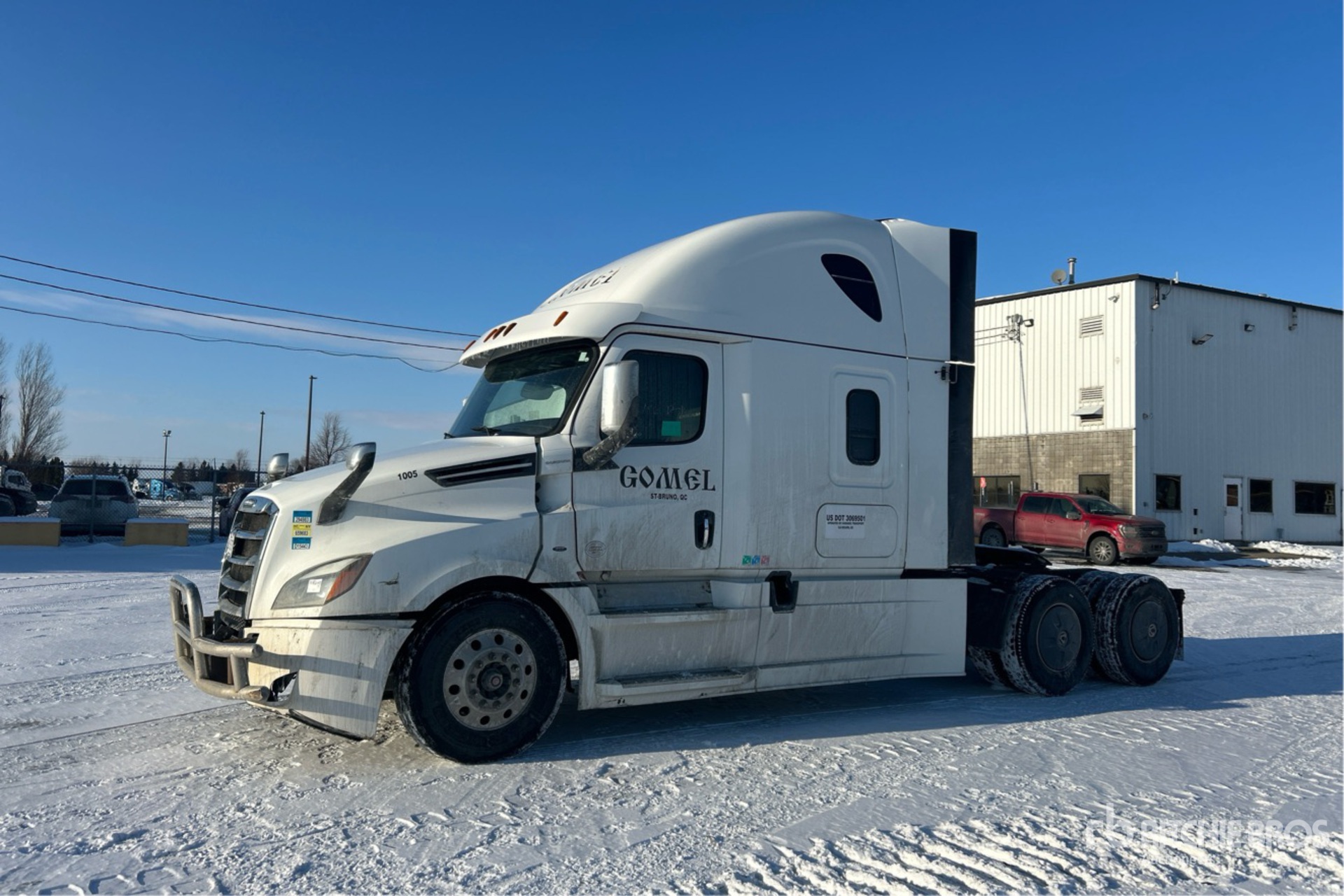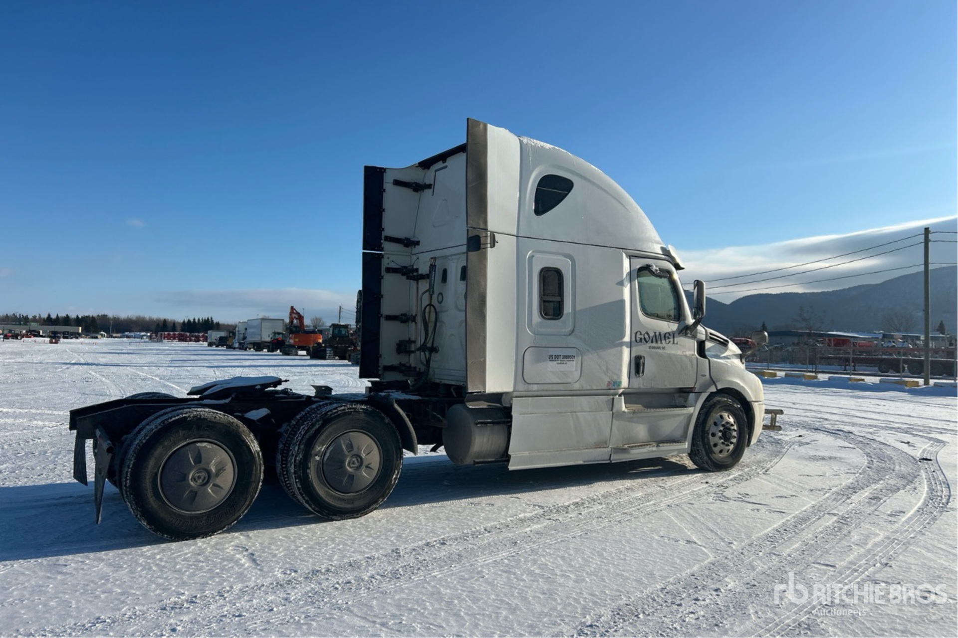 Detroit DD15 505 hp Engine, 25644 Engine hrs, Detroit DT12-1650-OH1 12-Speed Automated Transmission, 12500 lb Front Axle, 40000 lb Rears, 23814 kg GVWR, Engine Brake, Differential Lock, 60 in High Rise Sleeper Cab, Bunk Beds, 231 in Wheelbase, Air Suspension, Aluminum Wheels, 11R22.5, Air Sliding 5th Wheel, Dual Fuel Tanks