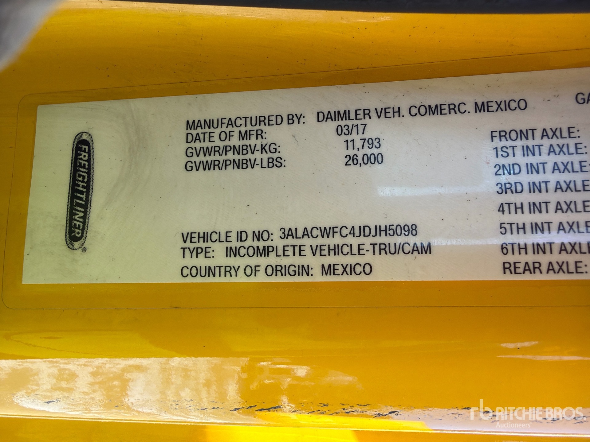The detailed equipment information is limited in scope, and Ritchie Bros. Auctioneers has not inspected any aspects or components of the equipment other than those expressly set forth herein. Unless expressly stated, we make no representations or warranties, express or implied, concerning the equipment or its components, including without limitation any representations or warranties concerning functionality, conformity or compliance with any safety standard or requirement of any applicable authority or regulatory body, fitness for any particular purpose, or merchantability. You are strongly advised to perform your own detailed inspection of the equipment prior to bidding.