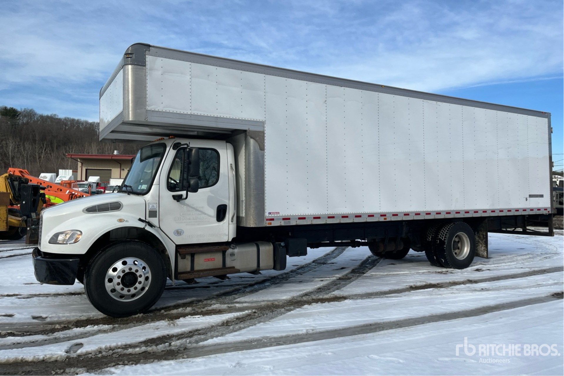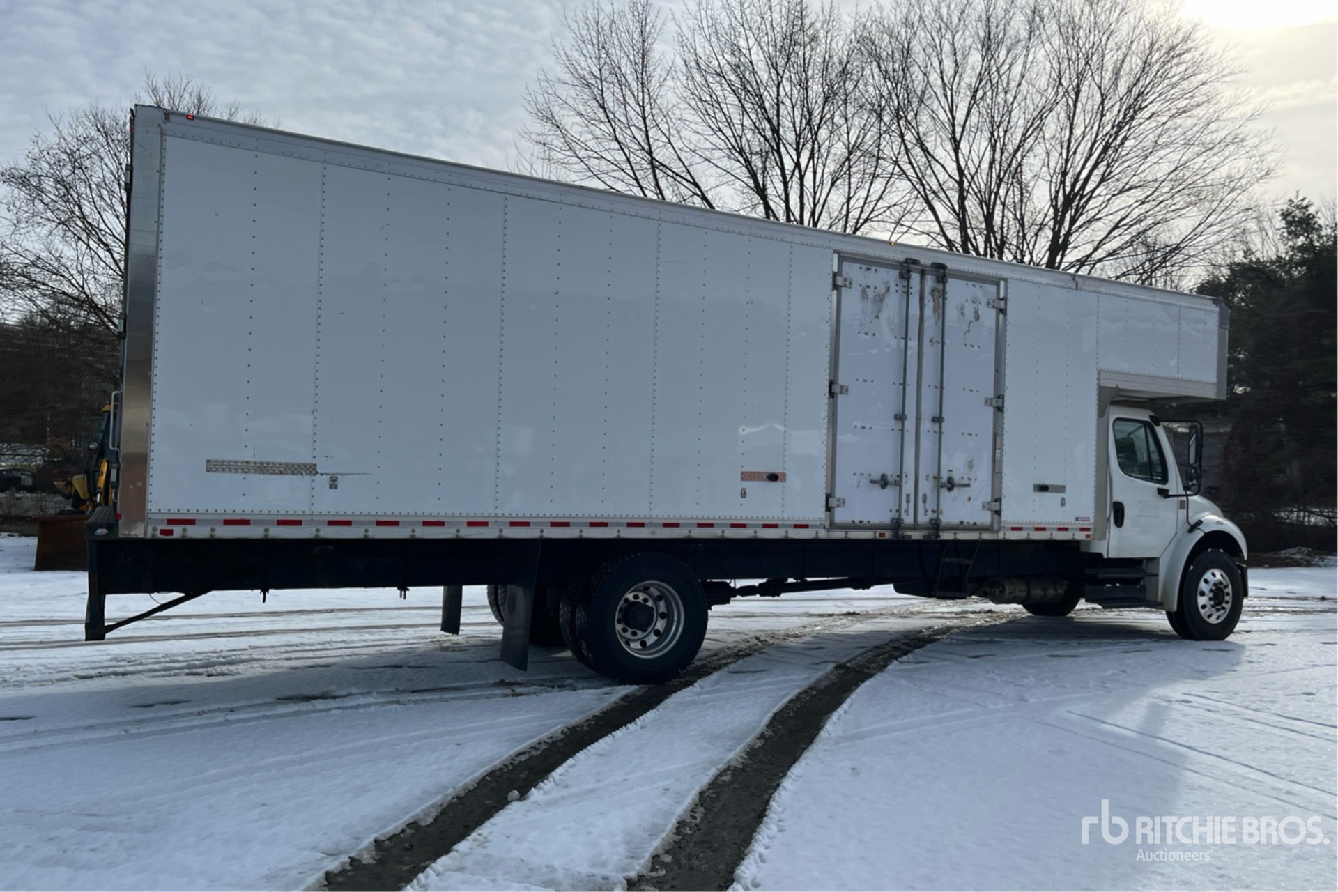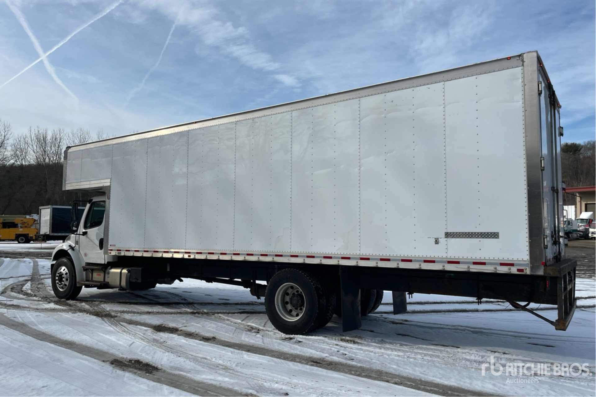Cummins B6.7 220 6 Cylinder 6.7 L Diesel 220 hp Engine, 2017 US EPA Label, Requires Diesel Exhaust Fluid, 6063 Engine hrs, Allison 2500 Automatic Transmission, 10000 lb Front Axle, 19000 lb Rears, Detroit DA-RS19 Drive Axles, 5.22:1 Axle Ratio, 26000 lb GVWR, Aluminum Wheels, 11R22.5, Airliner Air Ride Suspension, 270 in Wheelbase, Morgan 28 ft x 102 in Wide x 91 in High Body, Curbside Door, Walk-Up Ramp