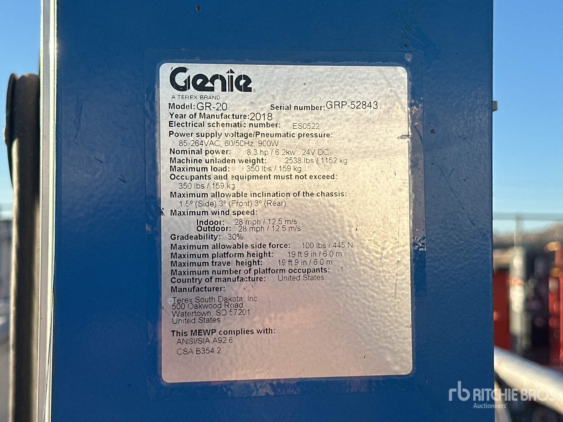 The detailed equipment information is limited in scope, and Ritchie Bros. Auctioneers has not inspected any aspects or components of the equipment other than those expressly set forth herein. Unless expressly stated, we make no representations or warranties, express or implied, concerning the equipment or its components, including without limitation any representations or warranties concerning functionality, conformity or compliance with any safety standard or requirement of any applicable authority or regulatory body, fitness for any particular purpose, or merchantability. You are strongly advised to perform your own detailed inspection of the equipment prior to bidding.