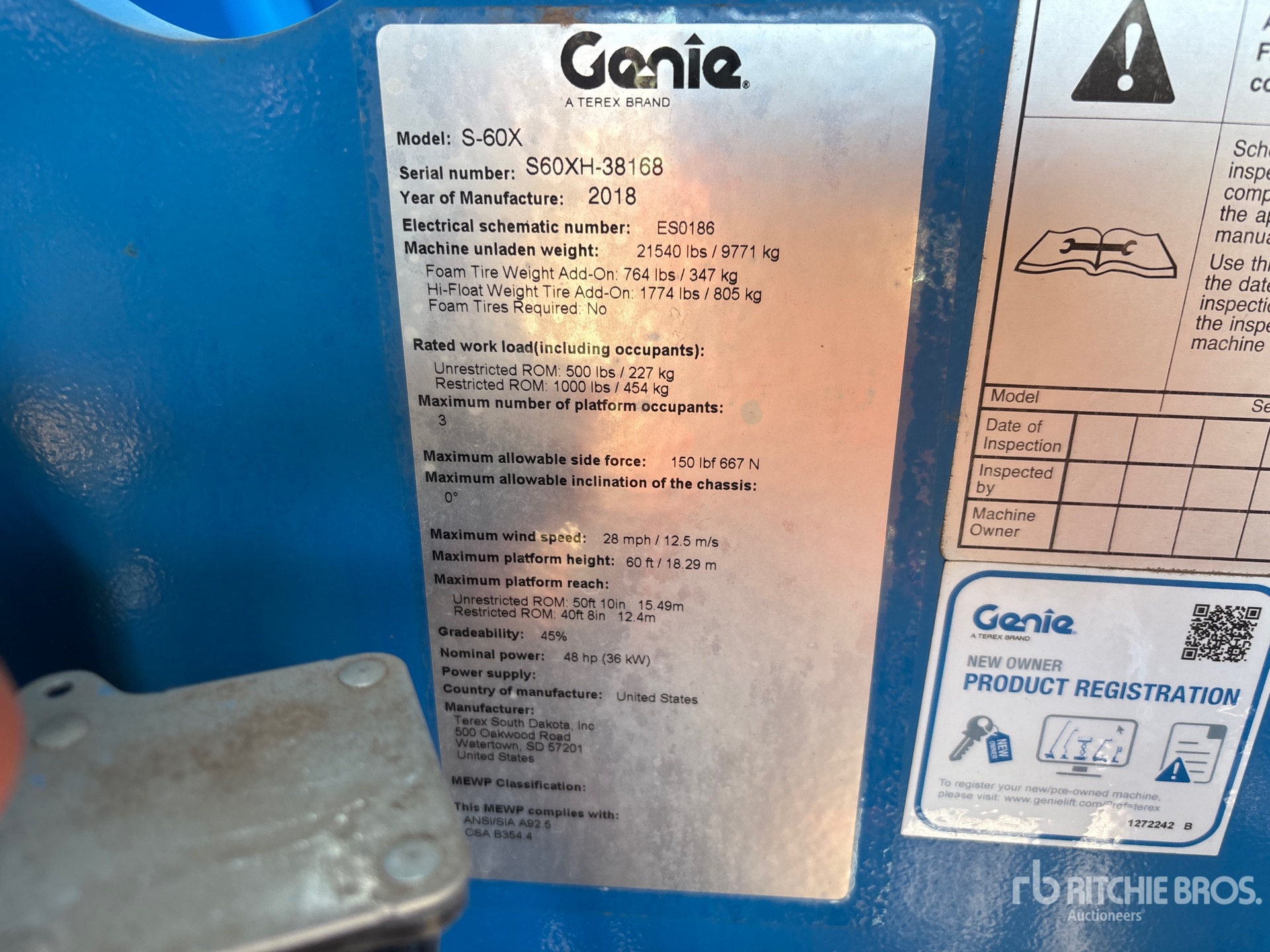 The detailed equipment information is limited in scope, and Ritchie Bros. Auctioneers has not inspected any aspects or components of the equipment other than those expressly set forth herein. Unless expressly stated, we make no representations or warranties, express or implied, concerning the equipment or its components, including without limitation any representations or warranties concerning functionality, conformity or compliance with any safety standard or requirement of any applicable authority or regulatory body, fitness for any particular purpose, or merchantability. You are strongly advised to perform your own detailed inspection of the equipment prior to bidding.