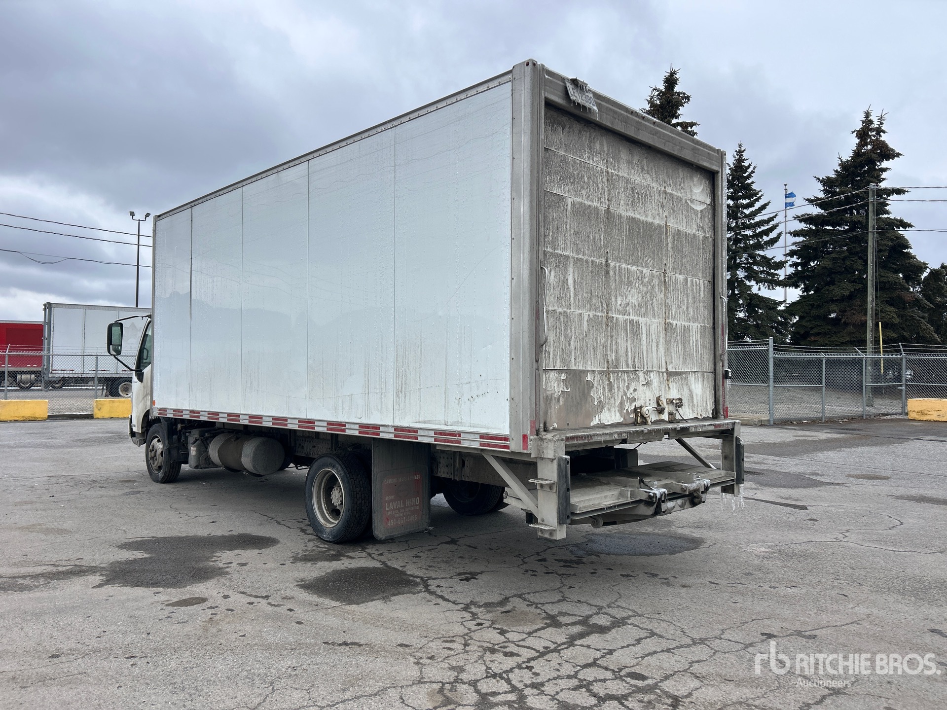 Hino J05E-TP 4 Cylinder Diesel 210 hp Engine, 2017 US EPA Label, Automatic Transmission, 7270 lb Front Axle, 13660 lb Rears, 8850 kg GVWR, 225/70R19.5 Front Tires, 225/70R19.5 Rear Tires, Spring Suspension, 172 in Wheelbase, Transit 20 ft x 102 in Wide x 86 in High Body, Liftgate