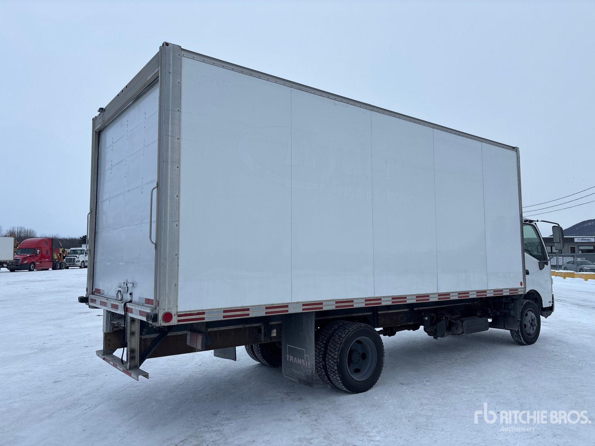 Hino J05E-TP 4 Cylinder Diesel 210 hp Engine, 2017 US EPA Label, Automatic Transmission, 7270 lb Front Axle, 13660 lb Rears, 8850 kg GVWR, 225/70R19.5, Spring Suspension, 173 in Wheelbase, Transit 20 ft x 102 in Wide x 90 in High Body, Walk-Up Ramp