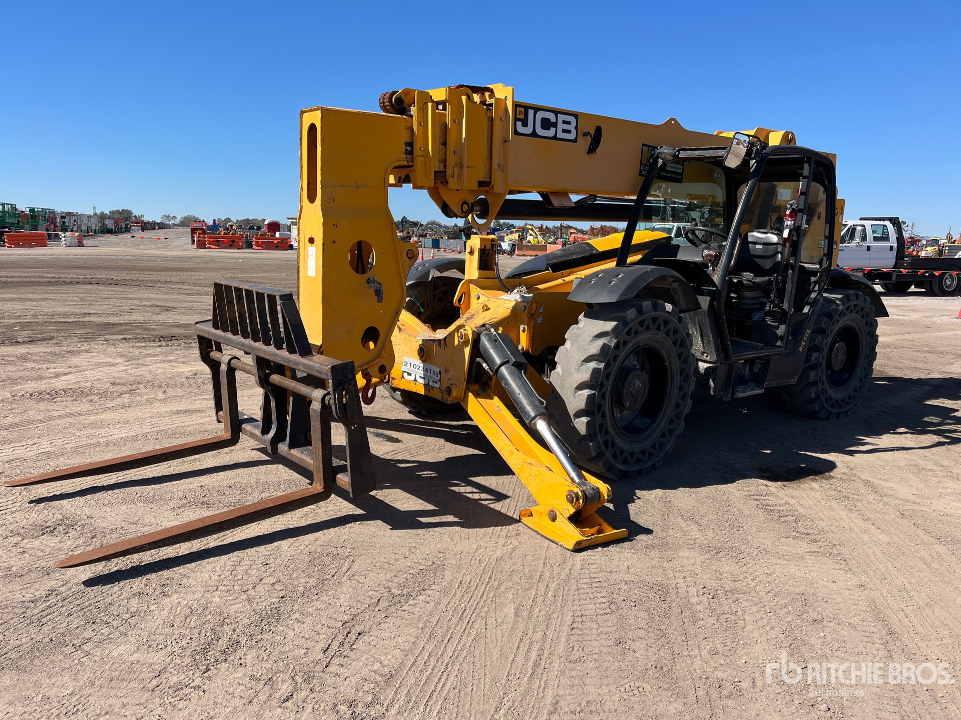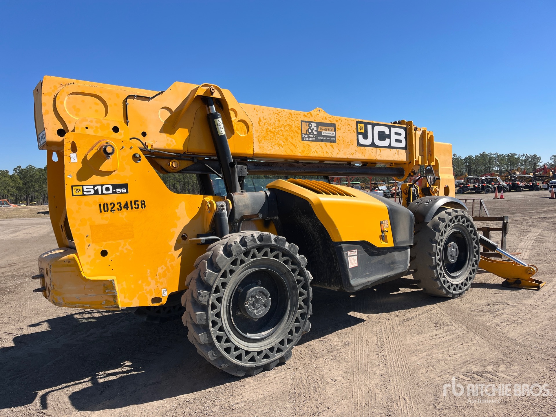 Open Operator Station, 56 ft Max Lift Height, 10000 lb Max Lift Capacity, 48 in Forks, Manual Coupler, Outriggers, Frame Leveling, Auxiliary Hydraulic Plumbing, 14.00-24 Aperture Tires, Equipment-from-Herc-Rentals