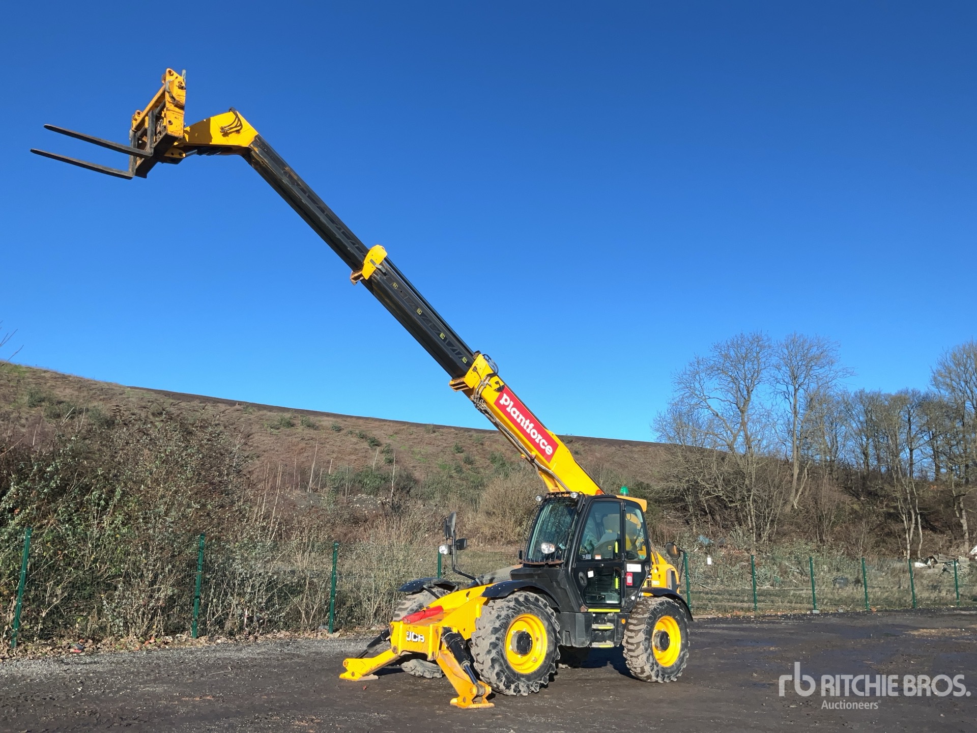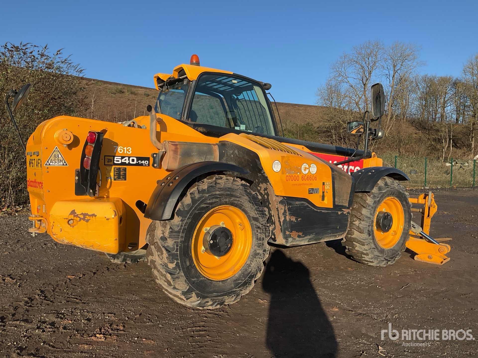Enclosed Cab, Air Conditioner, Rear View Camera, Load Moment Indicator, 14 m Max Lift Height, 4000 kg Max Lift Capacity, 2017 US EPA Label, 1070 mm Forks, Manual Coupler, Outriggers, Auxiliary Hydraulic Plumbing, 15.5-25 Tires