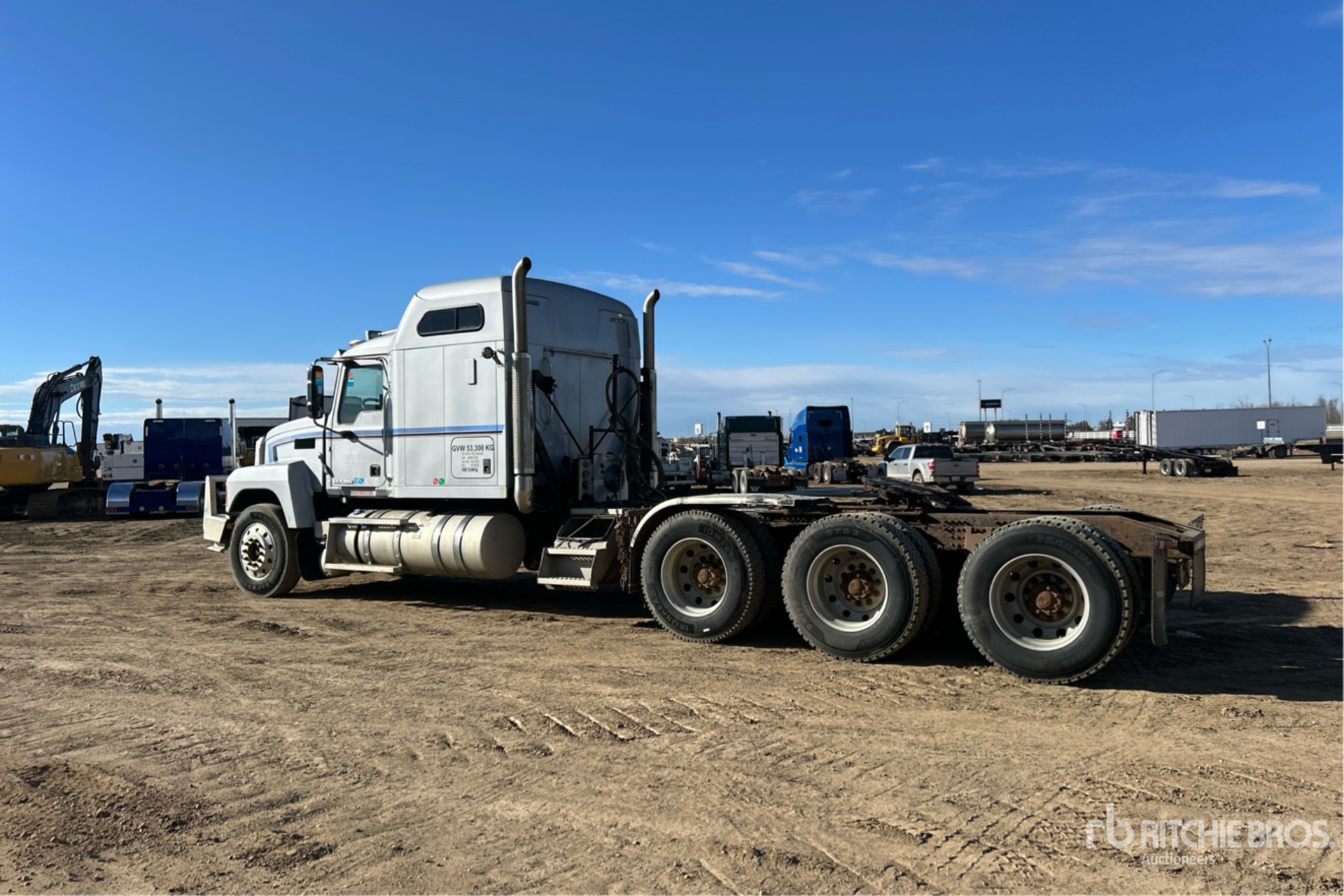 Mack MP8 505 hp Engine, 2017 US EPA Label, 18913 Engine hrs, Mack Mdrive Automatic Transmission, 6600 kg Front Axle, 15200 kg Rears, 29400 kg GVWR, Engine Brake, 60 in Mid Roof Sleeper Cab, 288 in Wheelbase, Air Suspension, Aluminum Wheels, 11R24.5, Air Sliding 5th Wheel, Dual Fuel Tanks