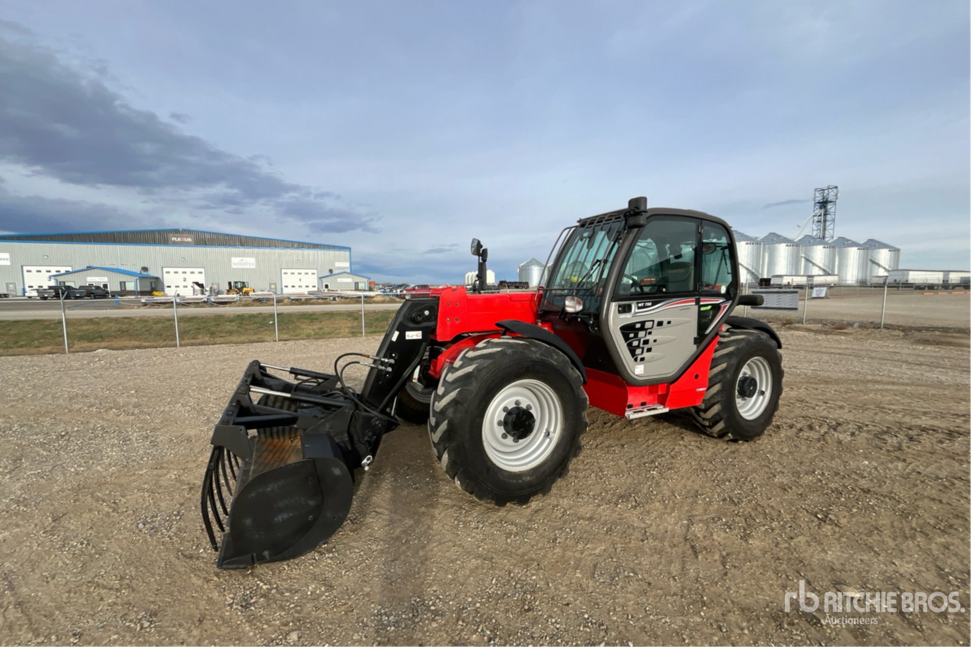Enclosed Cab, 7 m Max Lift Height, 3200 kg Max Lift Capacity, 80 in Grapple Bucket, Auxiliary Hydraulic Plumbing, 400/80-24 Tires, PORKDALE-FARMS