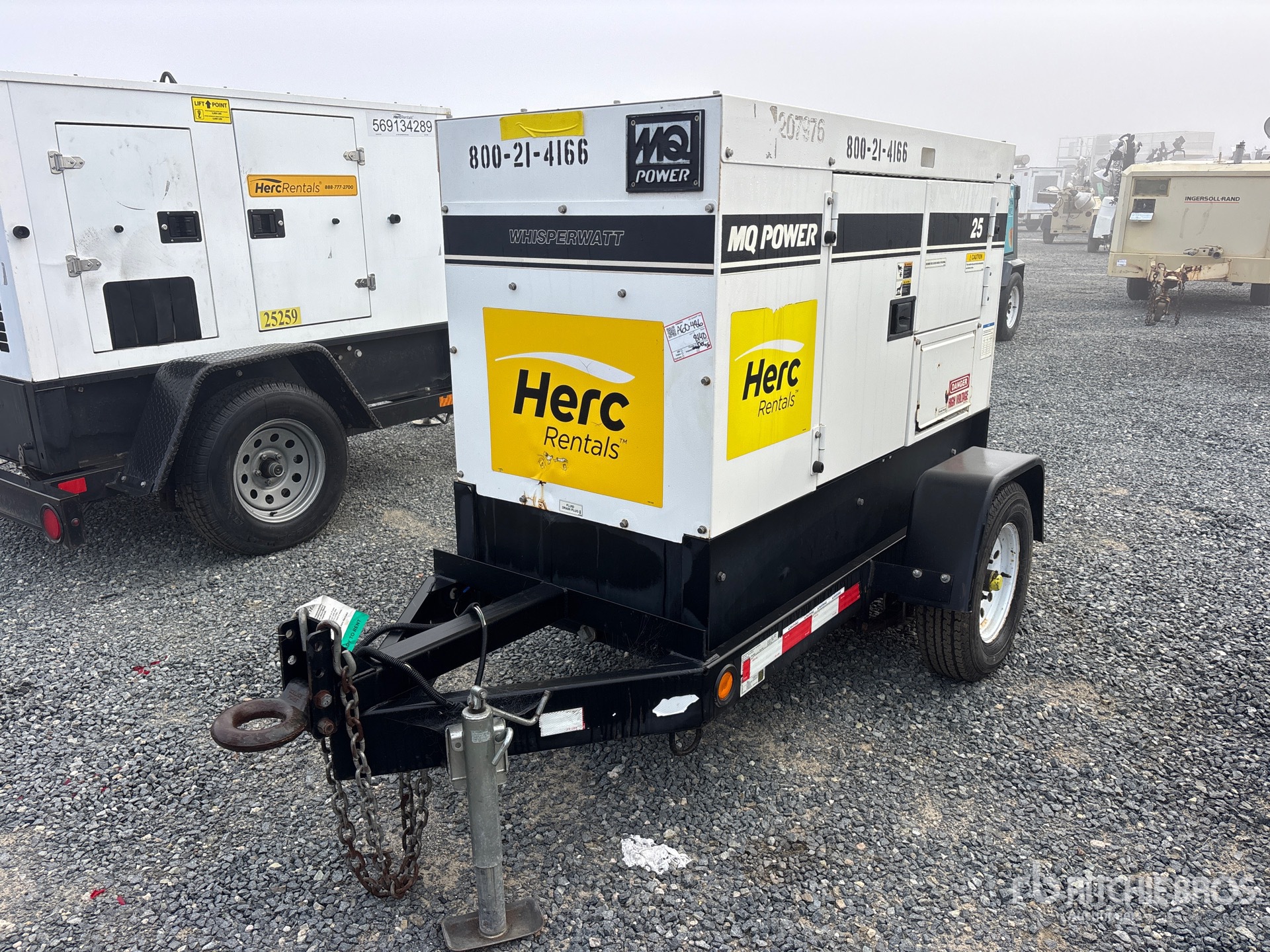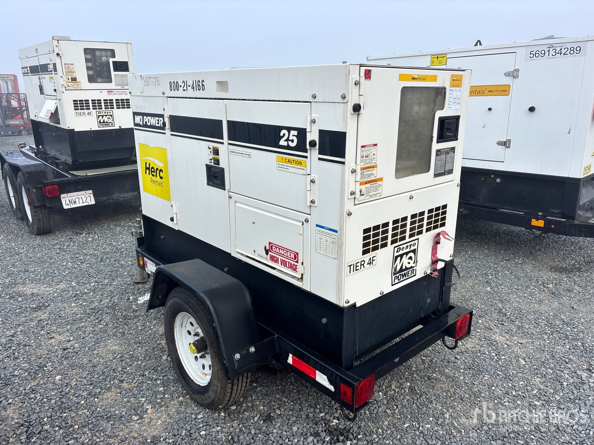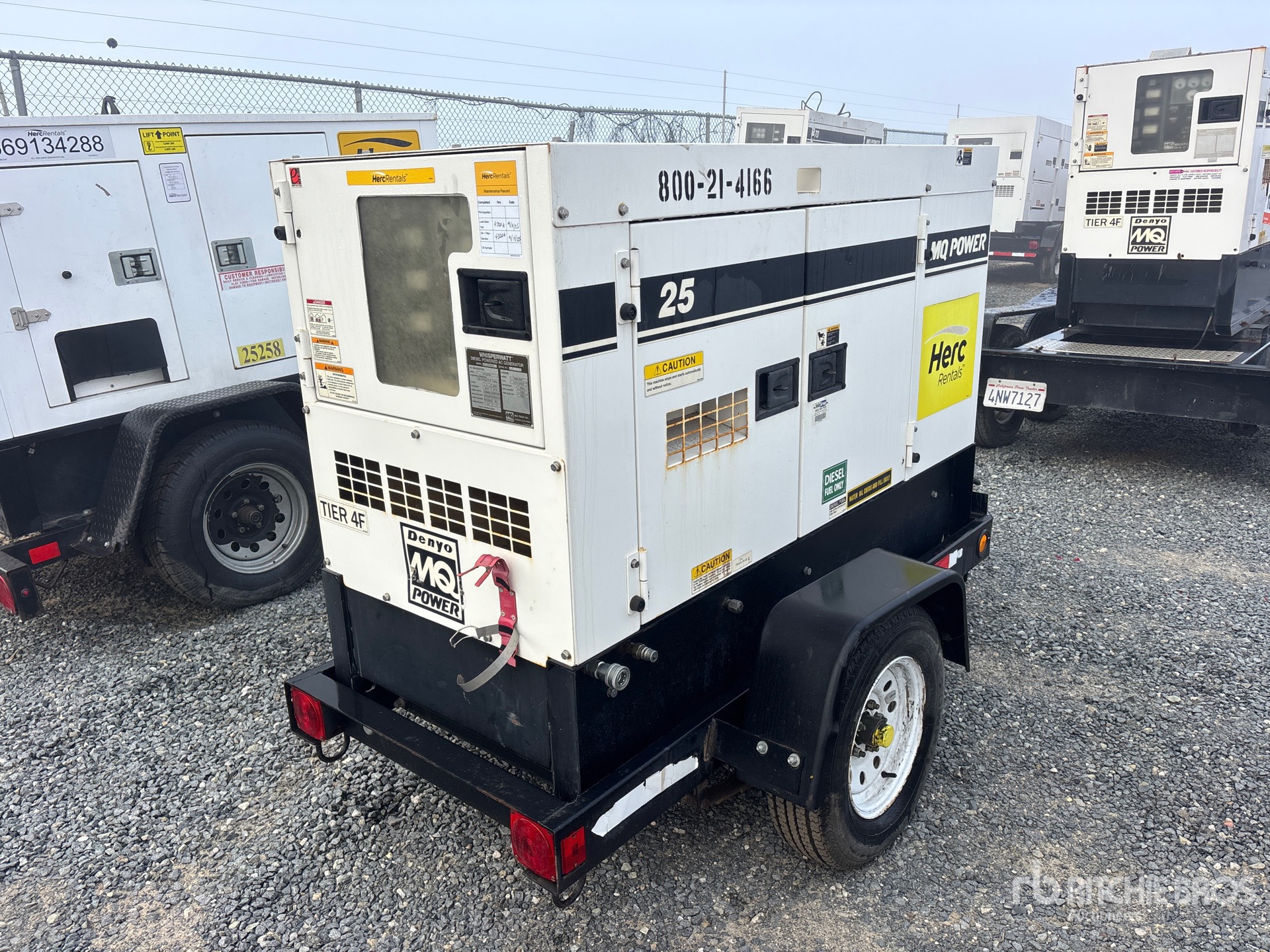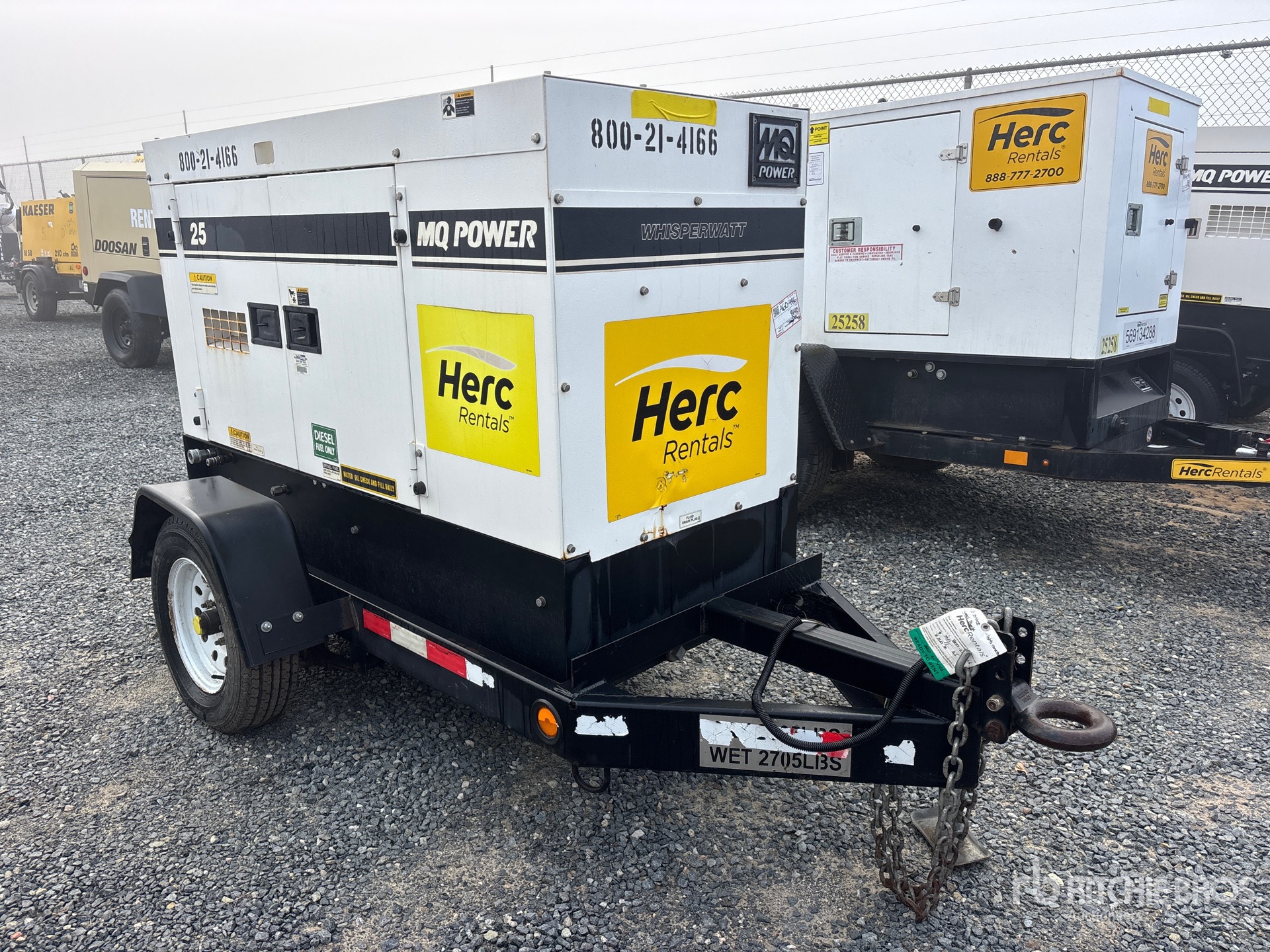 2018 US EPA Label, Isuzu BZ-4LE2T 4 Cylinder 30 kW 2.1 L Diesel Engine, 25 kVA/20 kW Rated 3 Phase Output, 240 V / 480 V Rated Voltage, 14.4 kVA,/14.4 kW, Rated Single Phase Output, 240 V / 120 V Rated Voltage, 240 V & 120 V Receptacles, Sound Attenuated, Bottom Mounted Fuel Tank, Lunette Ring Carrier Trailer, Equipment-from-Herc-Rentals