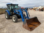 Enclosed Cab, Air Conditioner, Differential Lock, Mechanical Shuttle, 75 hp Engine, Stoll 35-18P Loader w/Joystick, 1800 mm Bucket, Loader Mounting Frame, 2 Mid-Mount Remotes, 2 Rear Remotes, Auxiliary Hydraulics, Air Brake System, 540/1000 PTO, 3-Point Hitch, 300/70R20 Front Tires, 380/70R28 Rear Tires, Rear Wheel Weights
