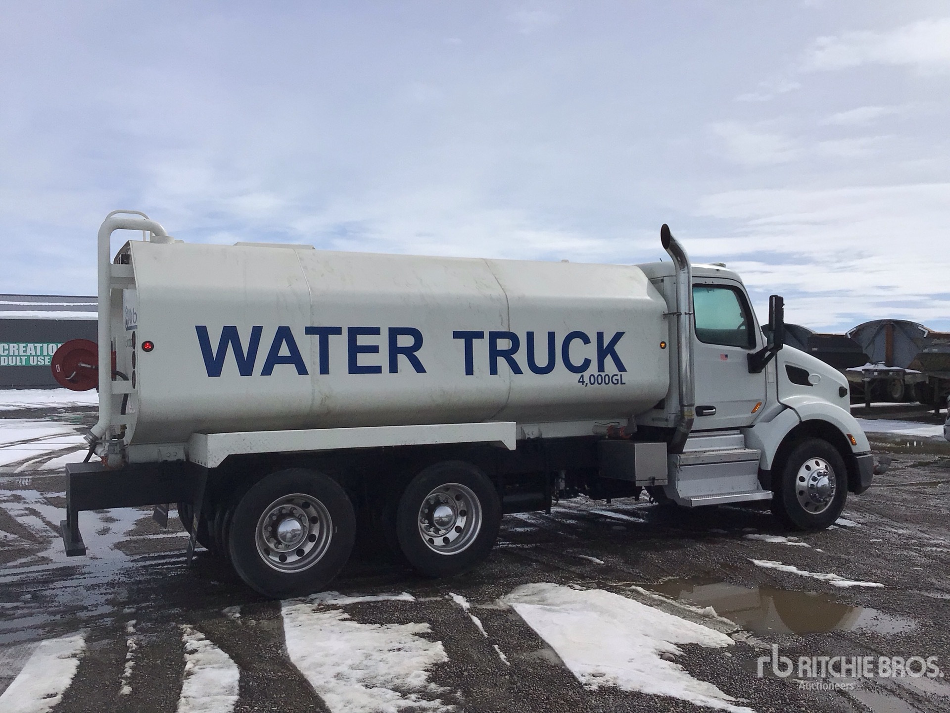 Paccar MX-13 6 Cylinder 12.9 L Diesel 430 hp Engine, 2017 US EPA Label, Requires Diesel Exhaust Fluid, Engine Brake, Automatic Transmission, Differential Lock, 12000 lb Front Axle, Air Ride Cab, Aluminum Outer Wheels, 275/80R22.5 Front Tires, 275/80R22.5 Rear Tires, Paccar Air Ride Suspension, 195 in Wheelbase, PTO, 4000 gal Steel Tank, PTO Driven Pump, 6 ft 6 in, Spray Bar, Hose Reel, Front Spray, Rear Spray, Side Spray