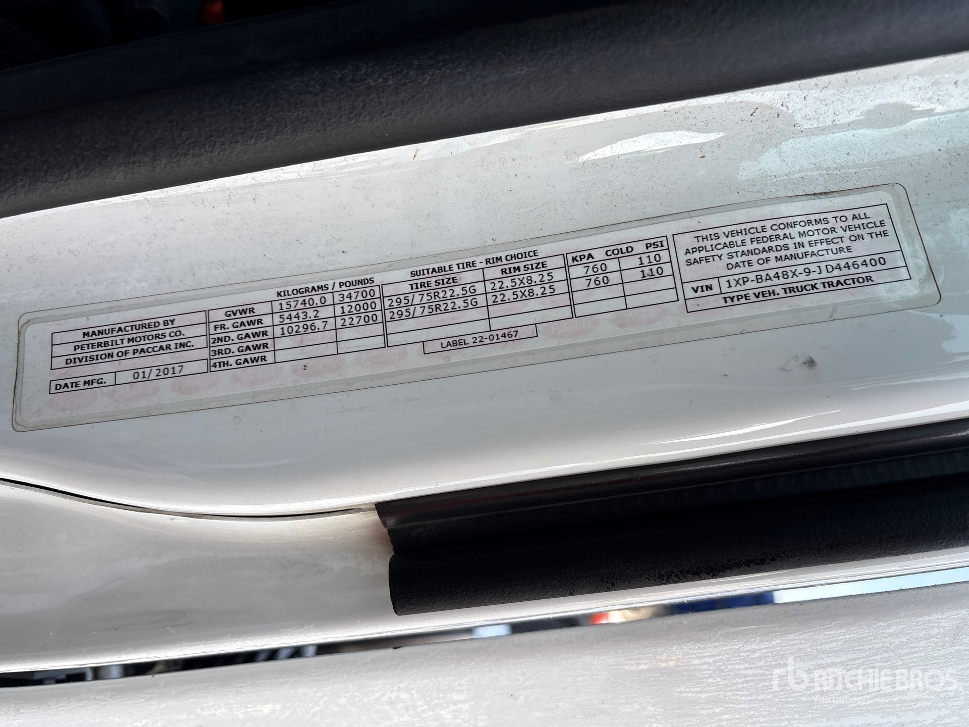 Cummins X15 Engine, 2017 US EPA Label, 12000 lb Front Axle, 22700 lb Rears, 34700 lb GVWR, 158 in Wheelbase, Air Suspension, 275/80R22.5 Front Tires, 275/80R22.5 Rear Tires