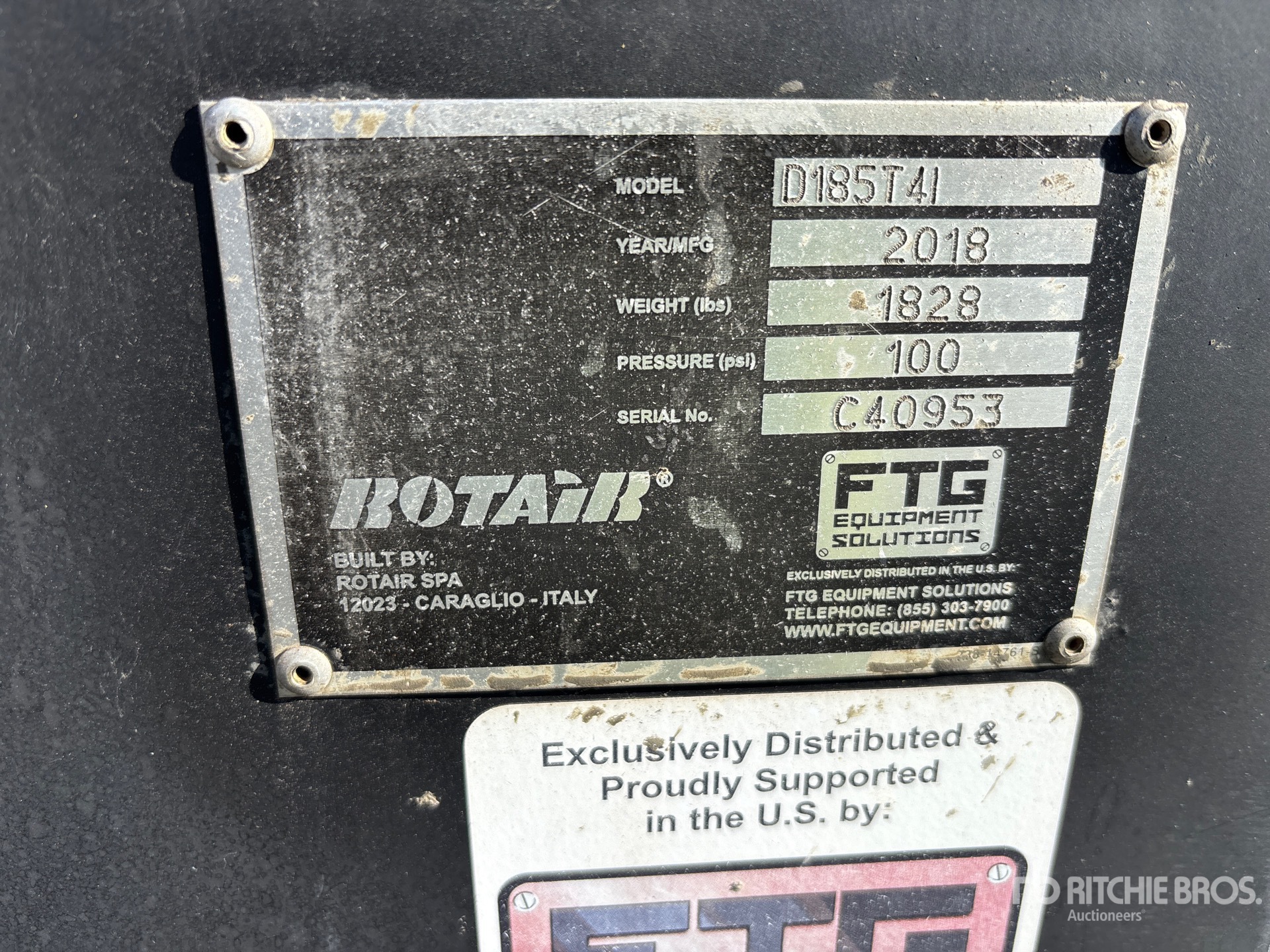 2018 Rotair D185T4F Mobile Air Compressor