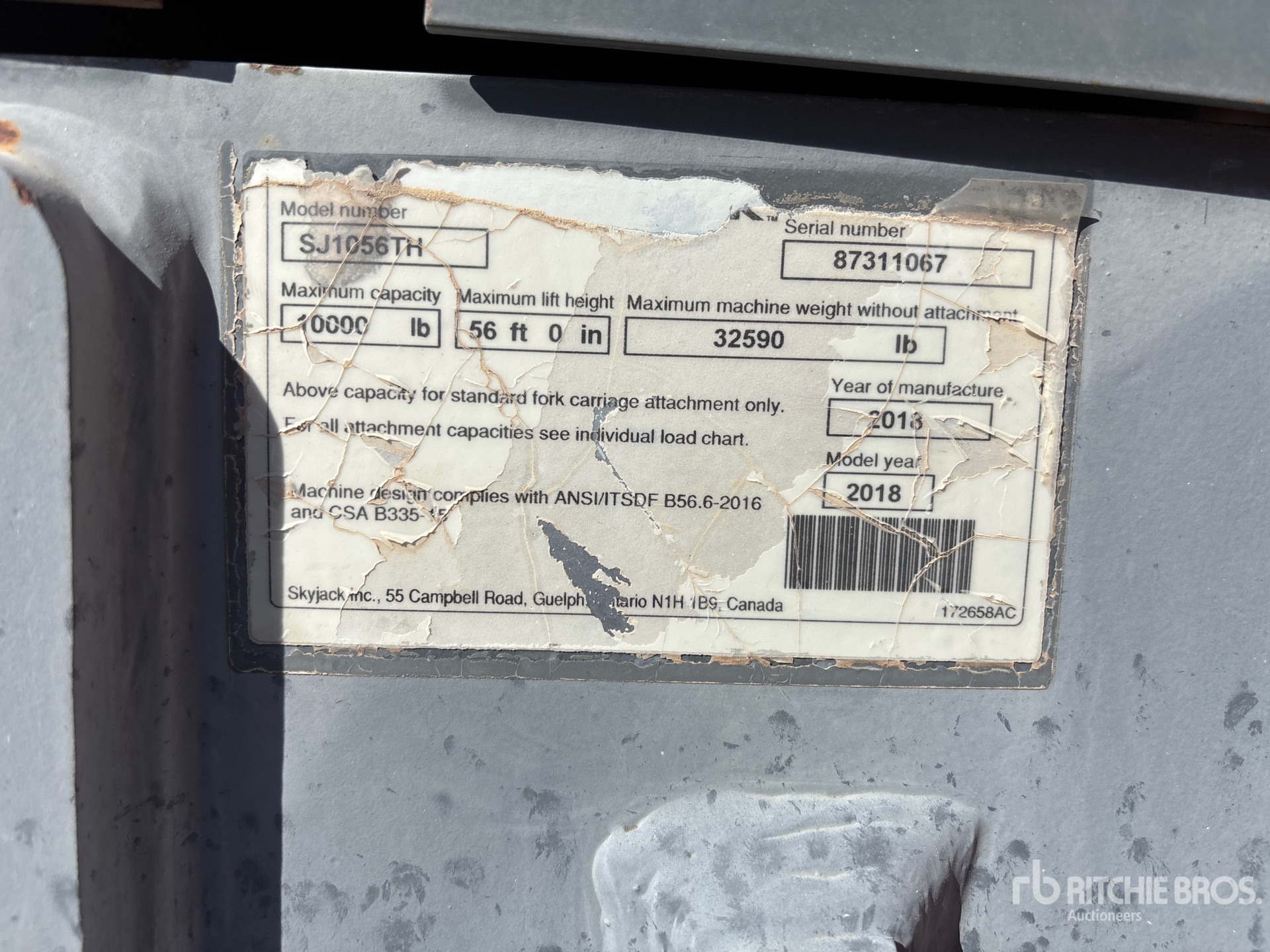The detailed equipment information is limited in scope, and Ritchie Bros. Auctioneers has not inspected any aspects or components of the equipment other than those expressly set forth herein. Unless expressly stated, we make no representations or warranties, express or implied, concerning the equipment or its components, including without limitation any representations or warranties concerning functionality, conformity or compliance with any safety standard or requirement of any applicable authority or regulatory body, fitness for any particular purpose, or merchantability. You are strongly advised to perform your own detailed inspection of the equipment prior to bidding.